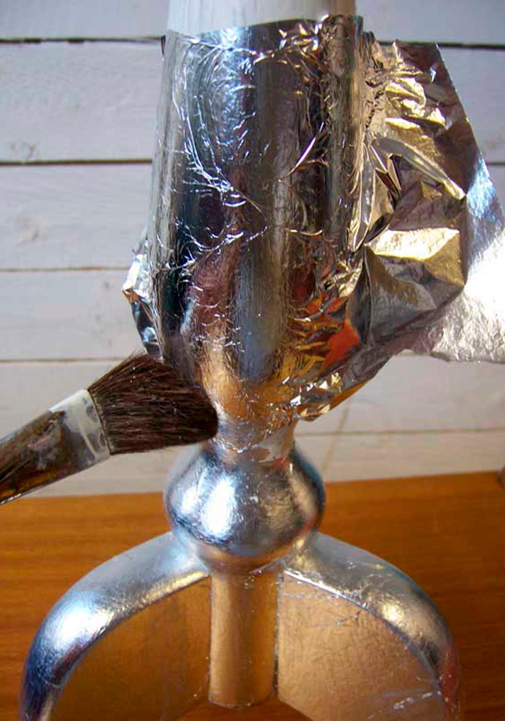 Lähes minkä tahansa esineen voi kullata tai hopeoida, kunhan pinta on tasainen ja tiivis. Pohjamaalattu puupöytä käsiteltiin mikstionilla. Sitten hopealehdet paineltiin kiinni, hangattiin tasaiseksi ja viimeisteltiin lakalla. Huomaa, että tämä tekniikka ei sovi lehtikultaukseen.