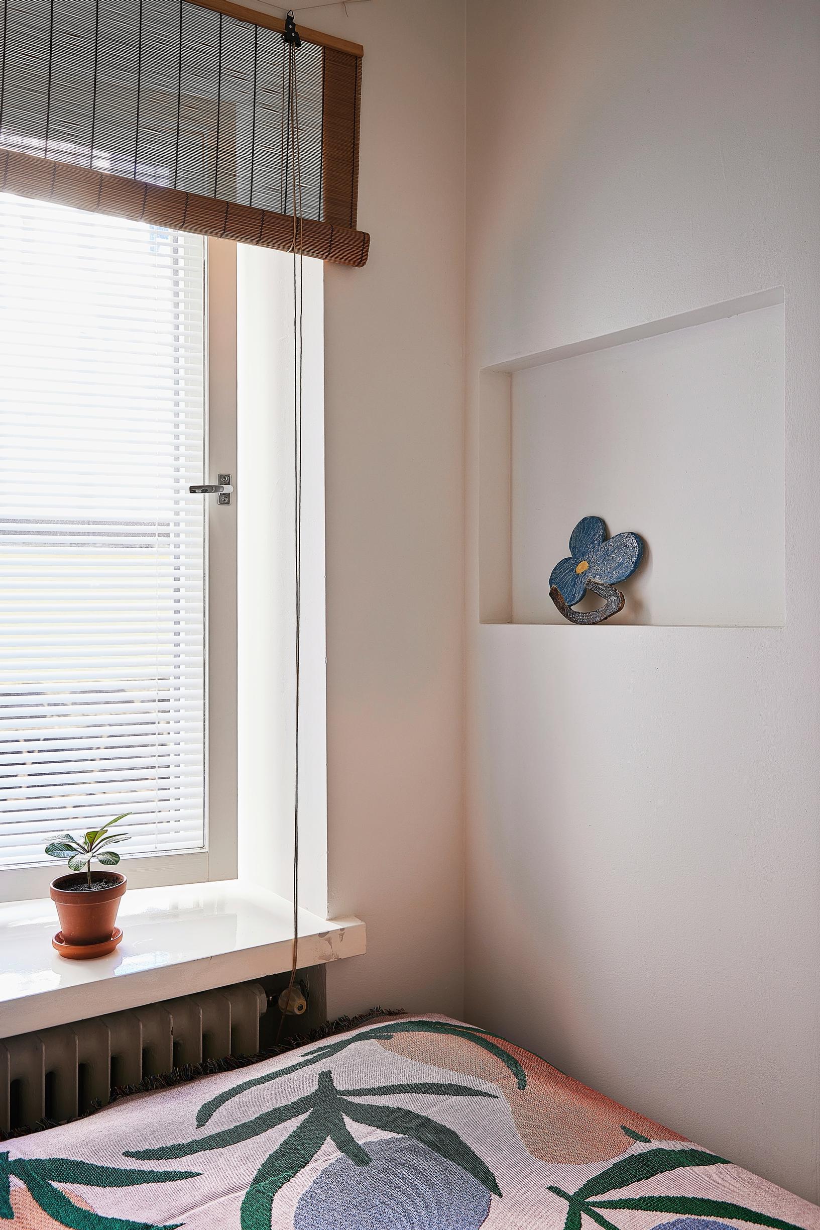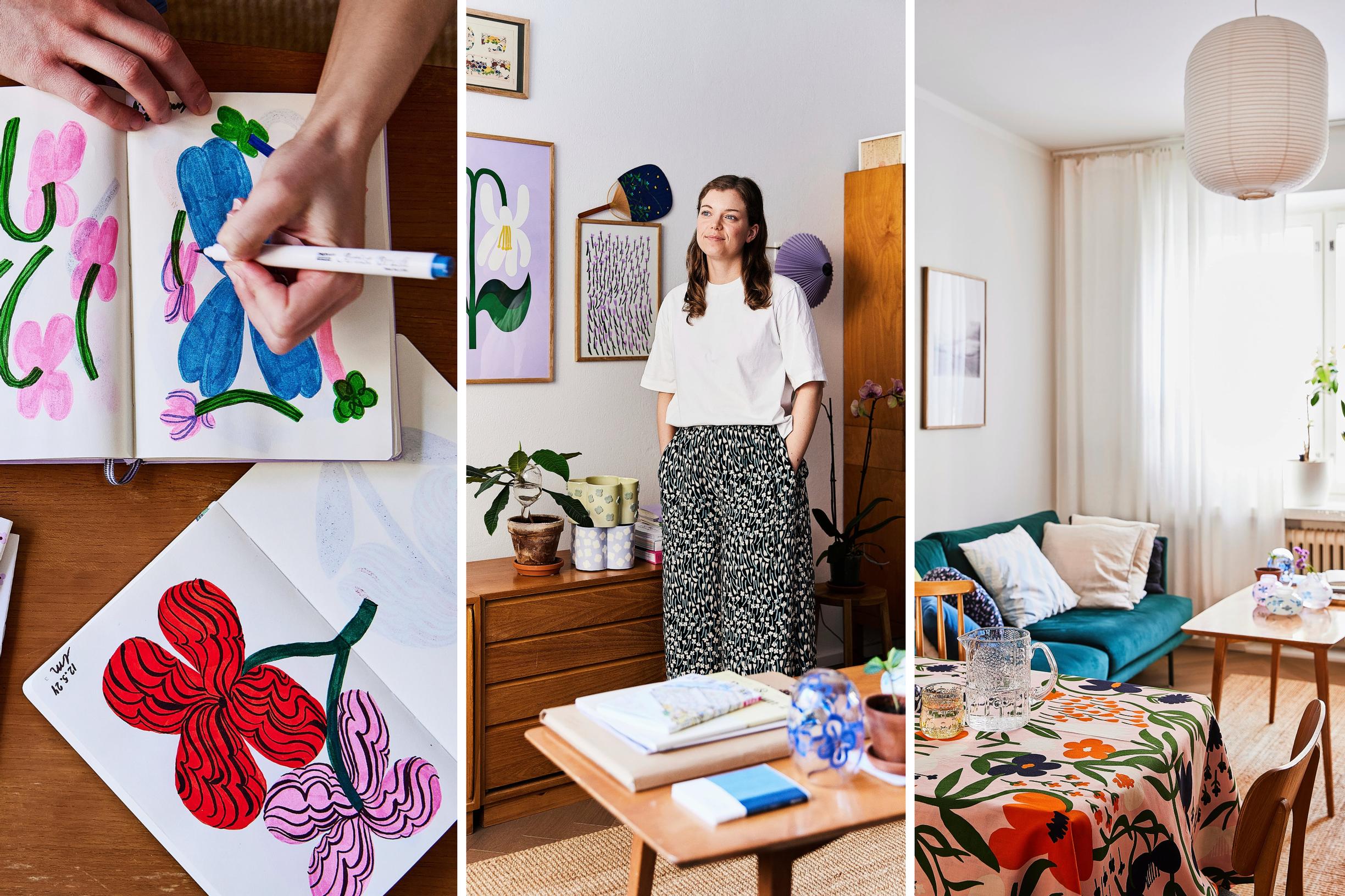 Marimekon kuosisuunnittelija Lotta Maija asuu kompaktissa kaksiossa: ”Keittiön purkamalla saimme erillisen makuuhuoneen”