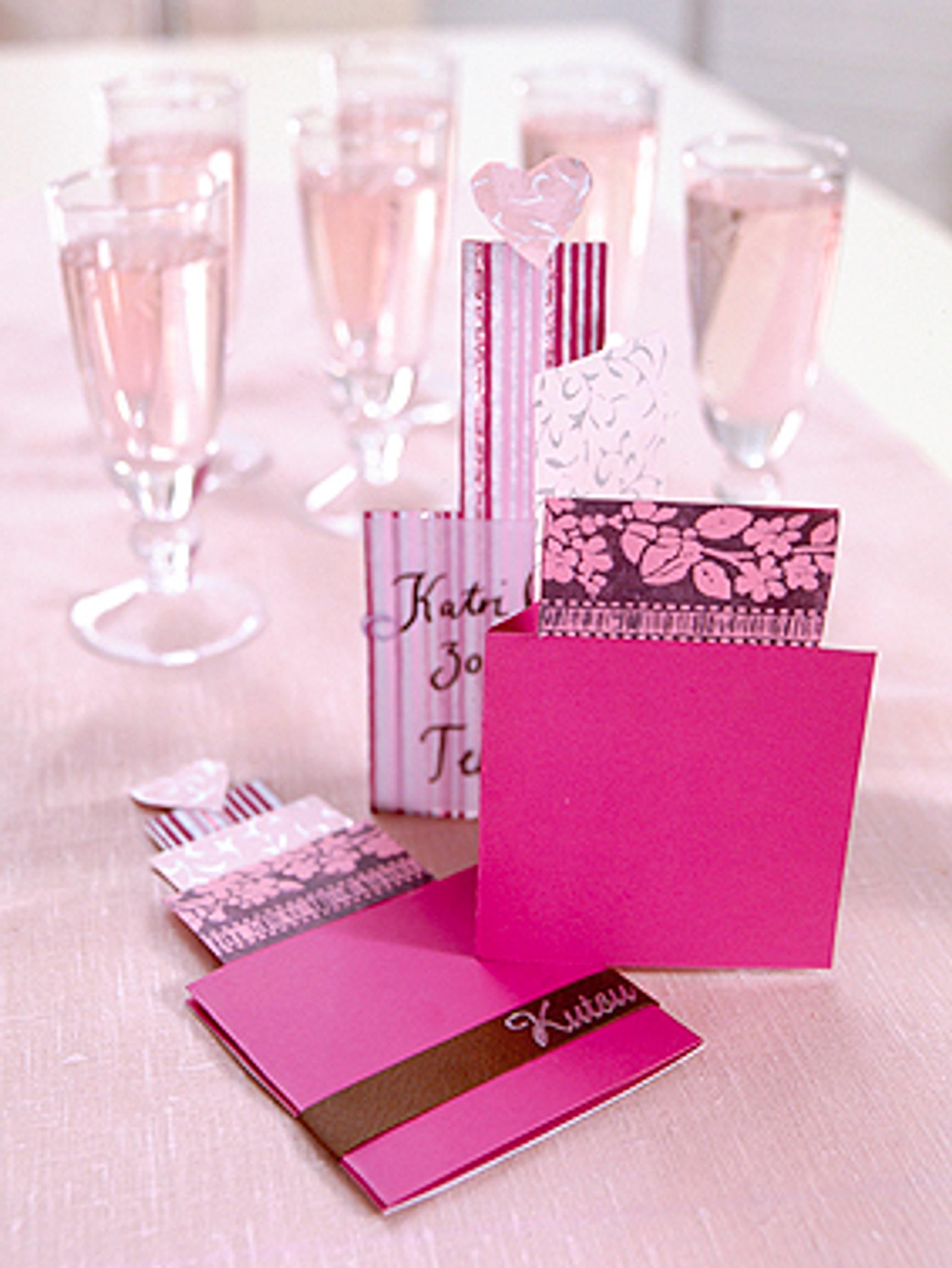 Askartele hääkakun muotoon leikattuja kutsukortteja hääteeman väreihin. Sama korttipohja taipuu vaikka synttärikortiksi.