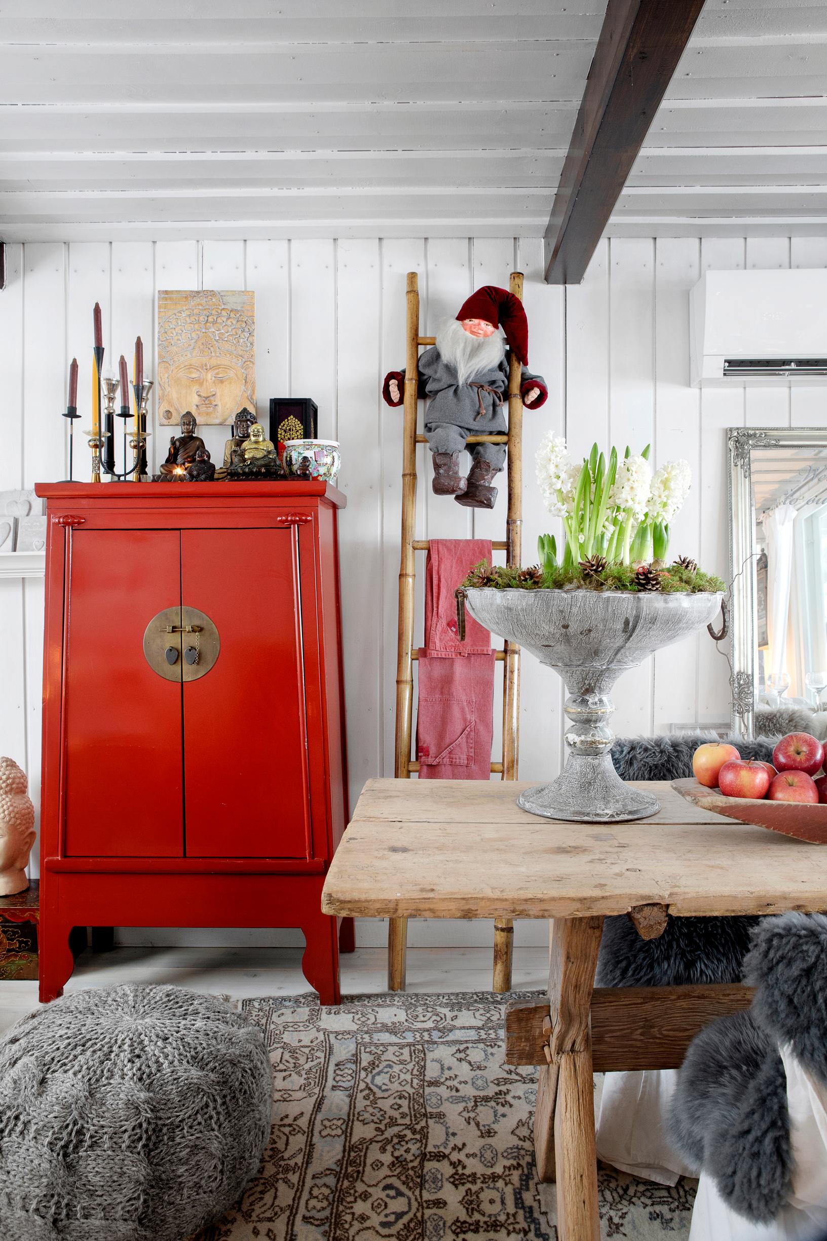 – Olen esteetikko, joka nauttii kaikilla aisteilla. Mökkiin saa hetkessä joulufiiliksen kanelin tuoksuisilla tuoksukynttilöillä.