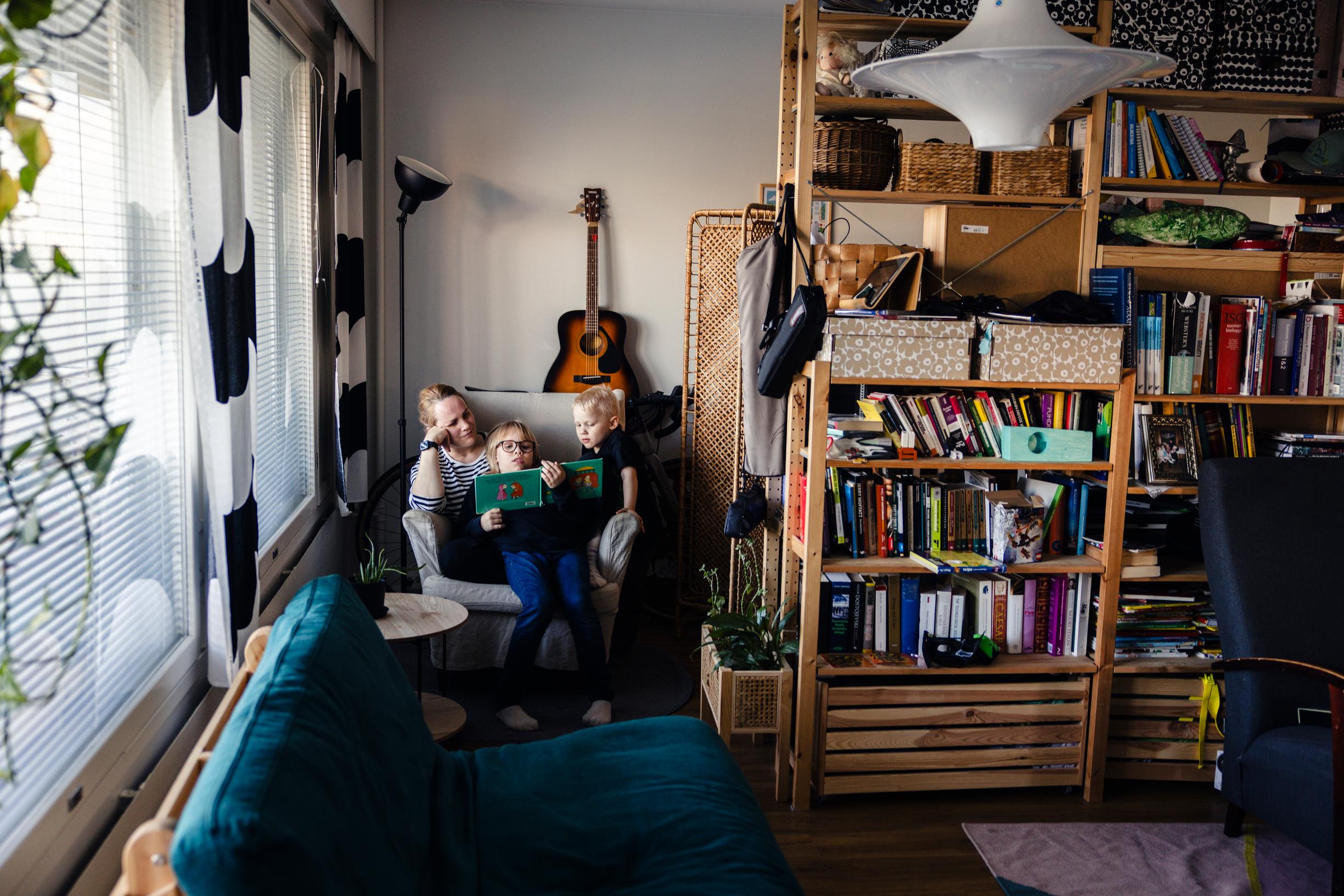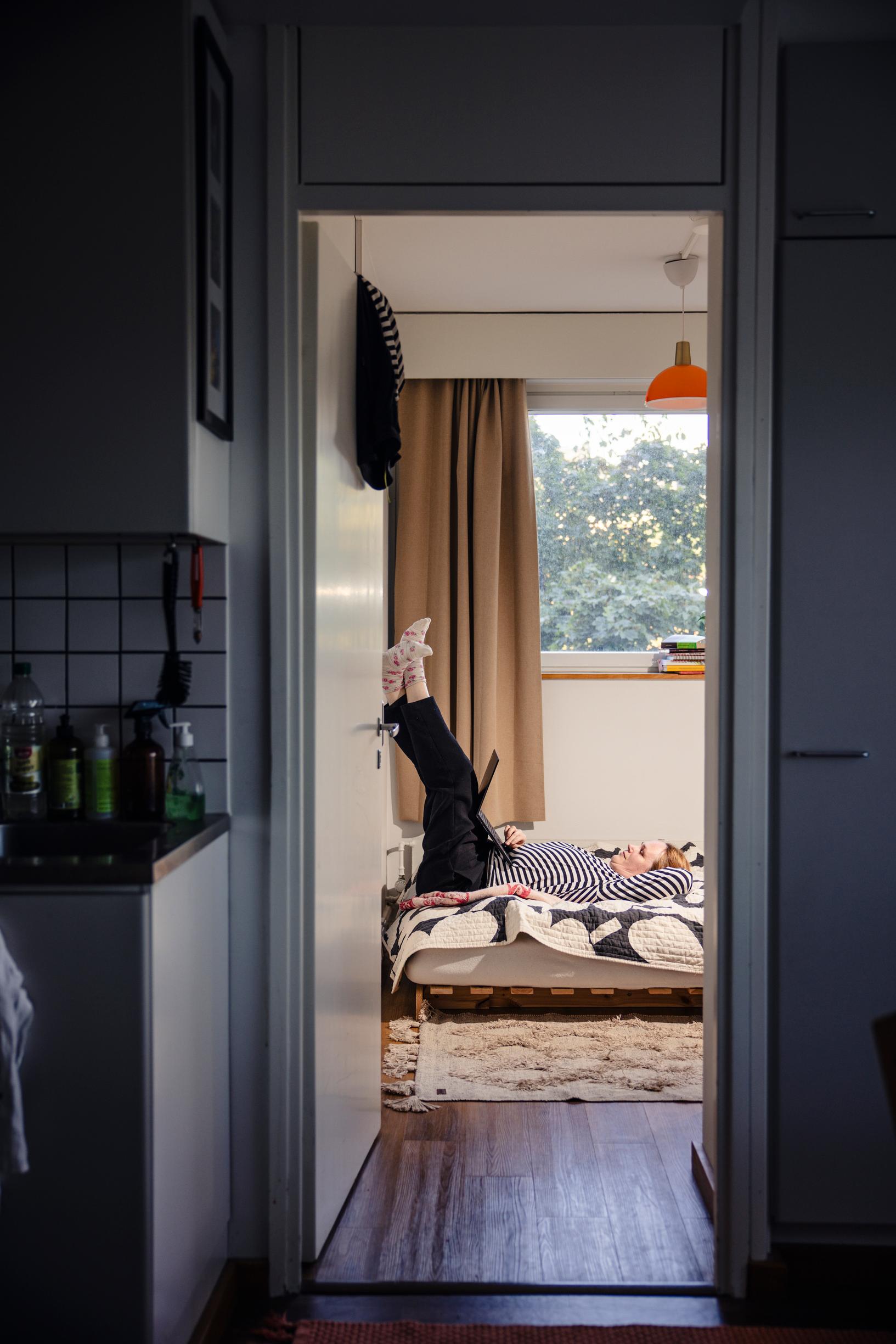 ”Lapset toivovat välillä omia huoneita, kun kavereillakin on, mutta he tekevät niin paljon asioita yhdessä, että en näe siinä järkeä. Huoneet toisivat vain turhia hukkaneliöitä. Tarvittaessa me vanhemmat voimme muuttaa sänkymme olohuoneeseen”, Minna pohtii.