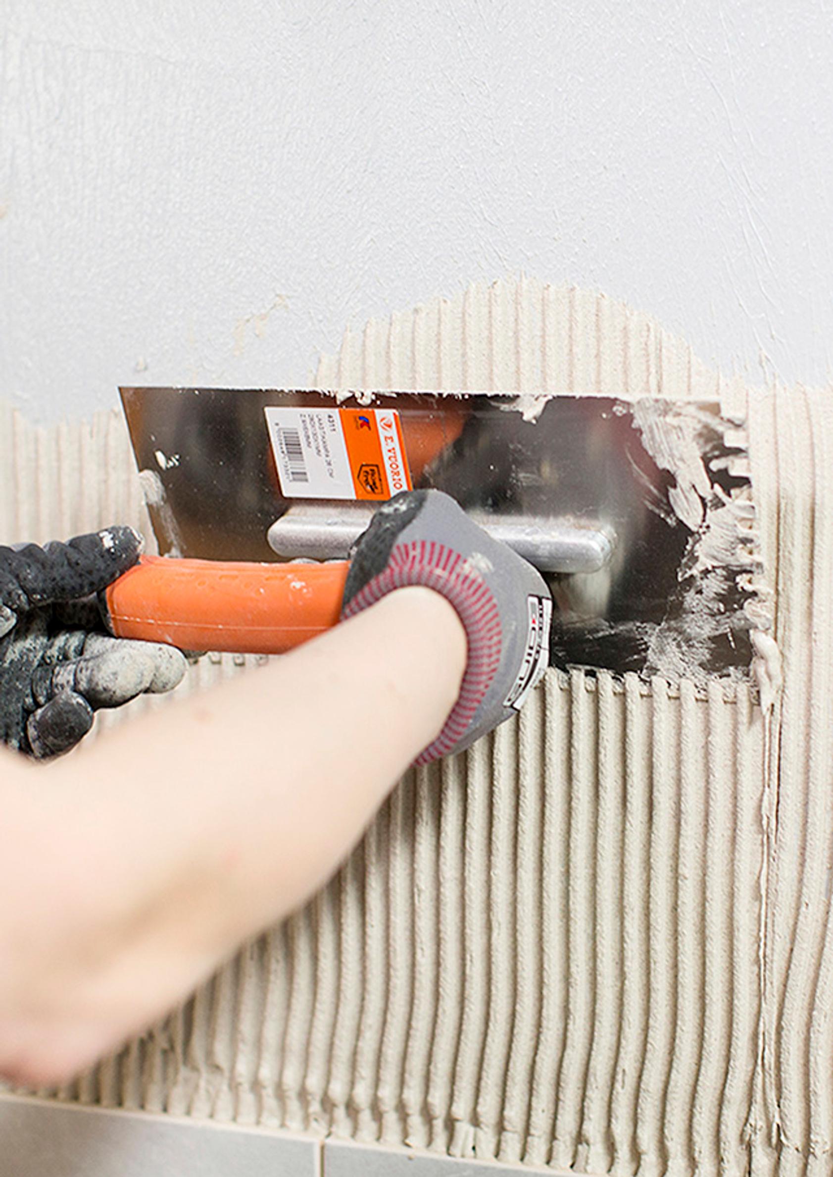 7. Laasti levitetään kammalla. Piikkien pituus valitaan laatan mukaan.