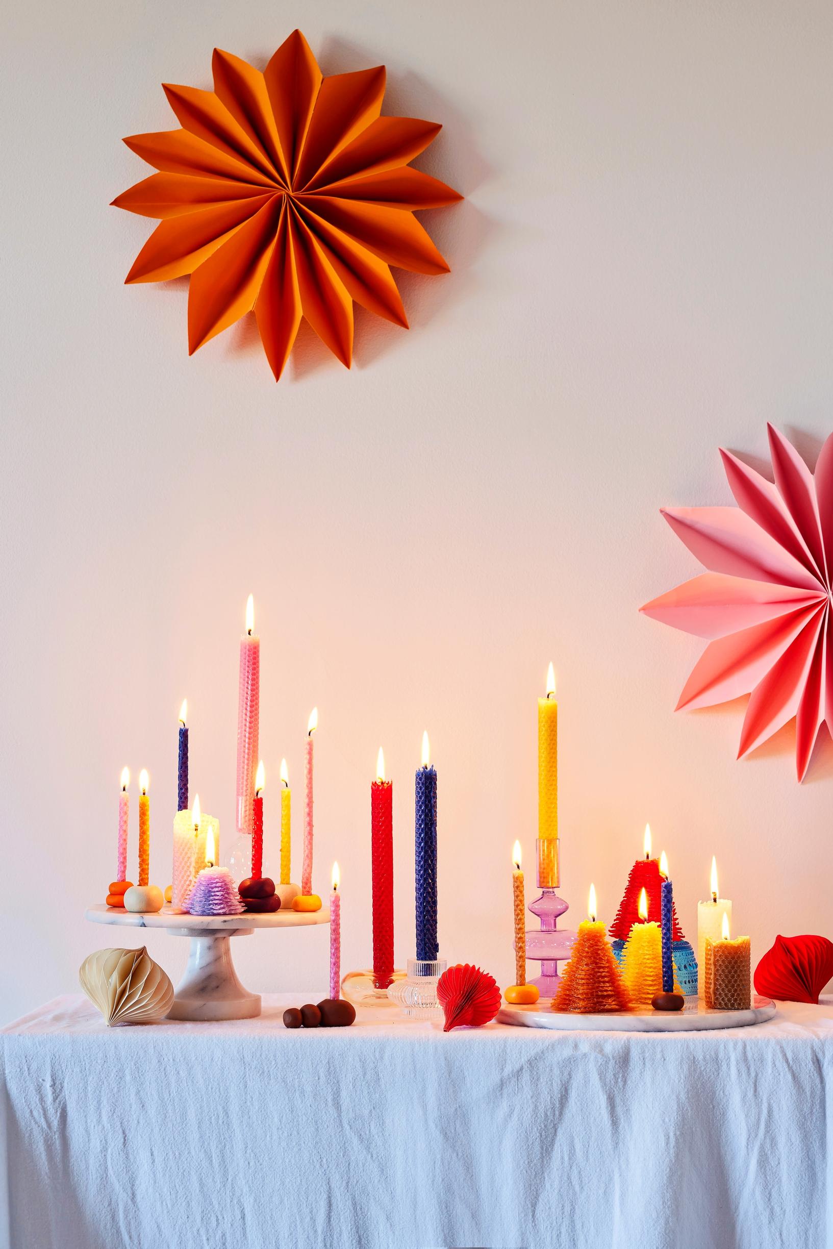 Mehiläisvahakynttilät syntyvät helposti vahalevyistä rullaamalla ja pinoamalla. Perusta askartelupaja ja tee juhlakauden ekologisimmat kynttilät! Löydät jutusta myös ohjeen hauskoihin kynttilänjalkoihin.