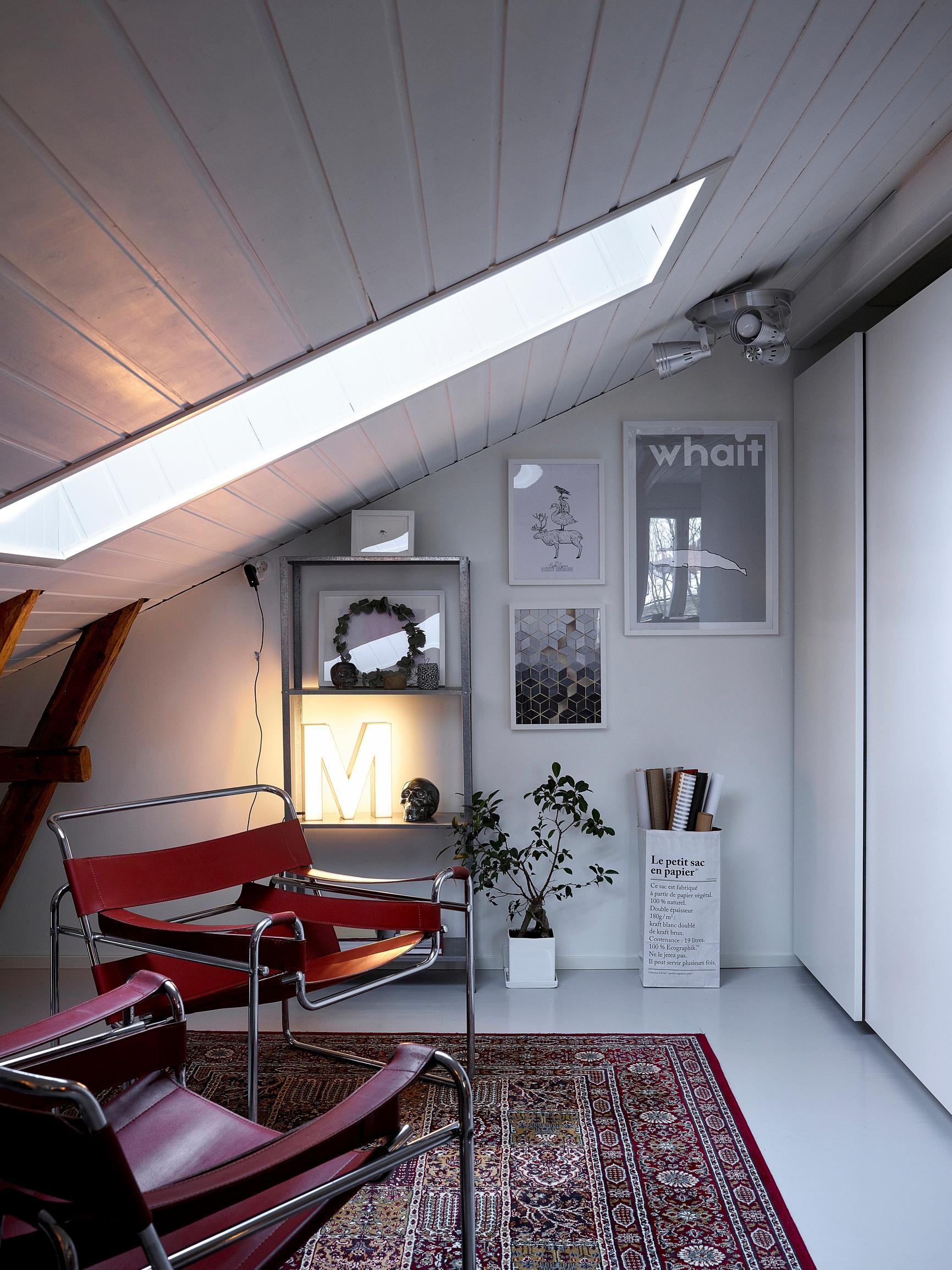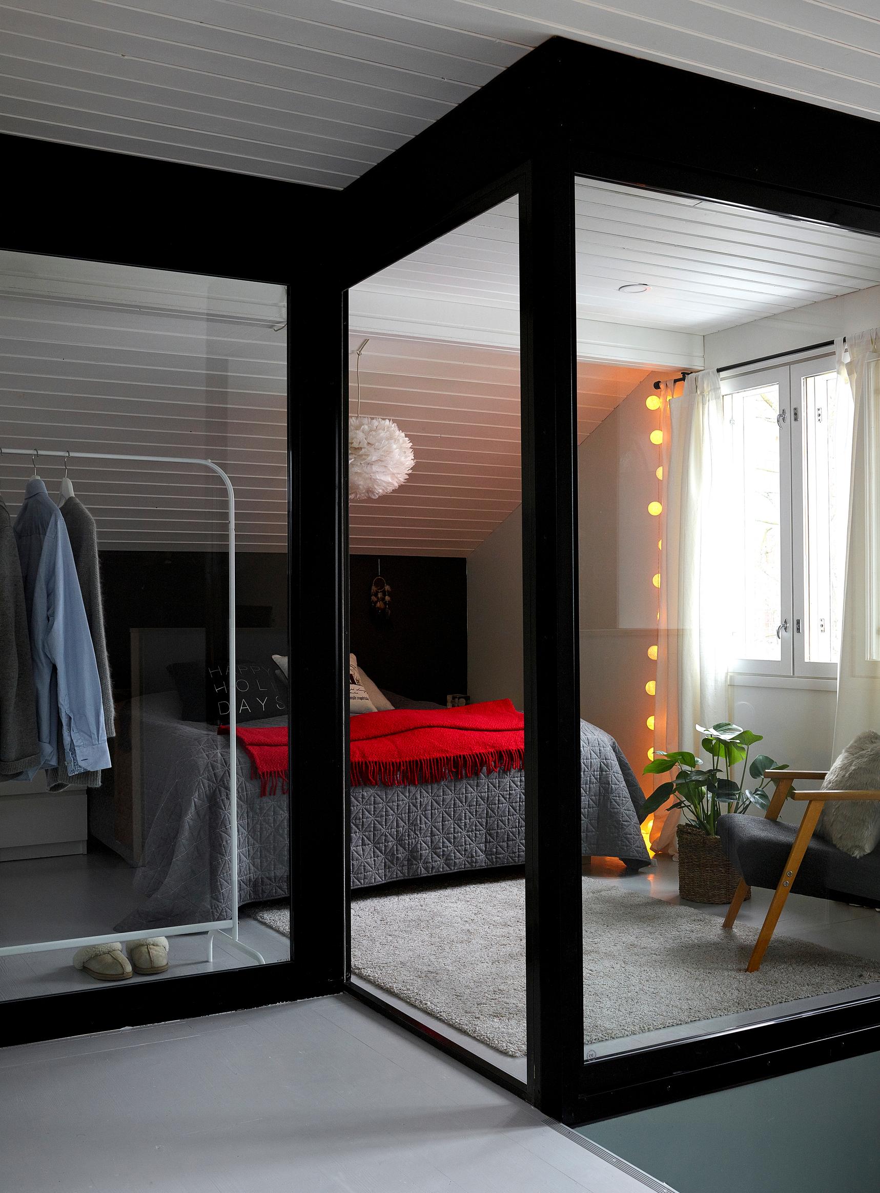 Monet aiemmin varastossa odotelleet kalusteet saivat paikan uudesta kodista. Kunniapaikalla olohuoneessa, kuusen vieressä, on Marian mummin vanha lipasto, jonka hennon vaaleanpunainen sävy toistuu myös eteisen ovessa. Maria halusi ovesta vaaleanpunaisen ja Joonas keltaisen. Niinpä ovi maalattiin eri värein eri puolilta.