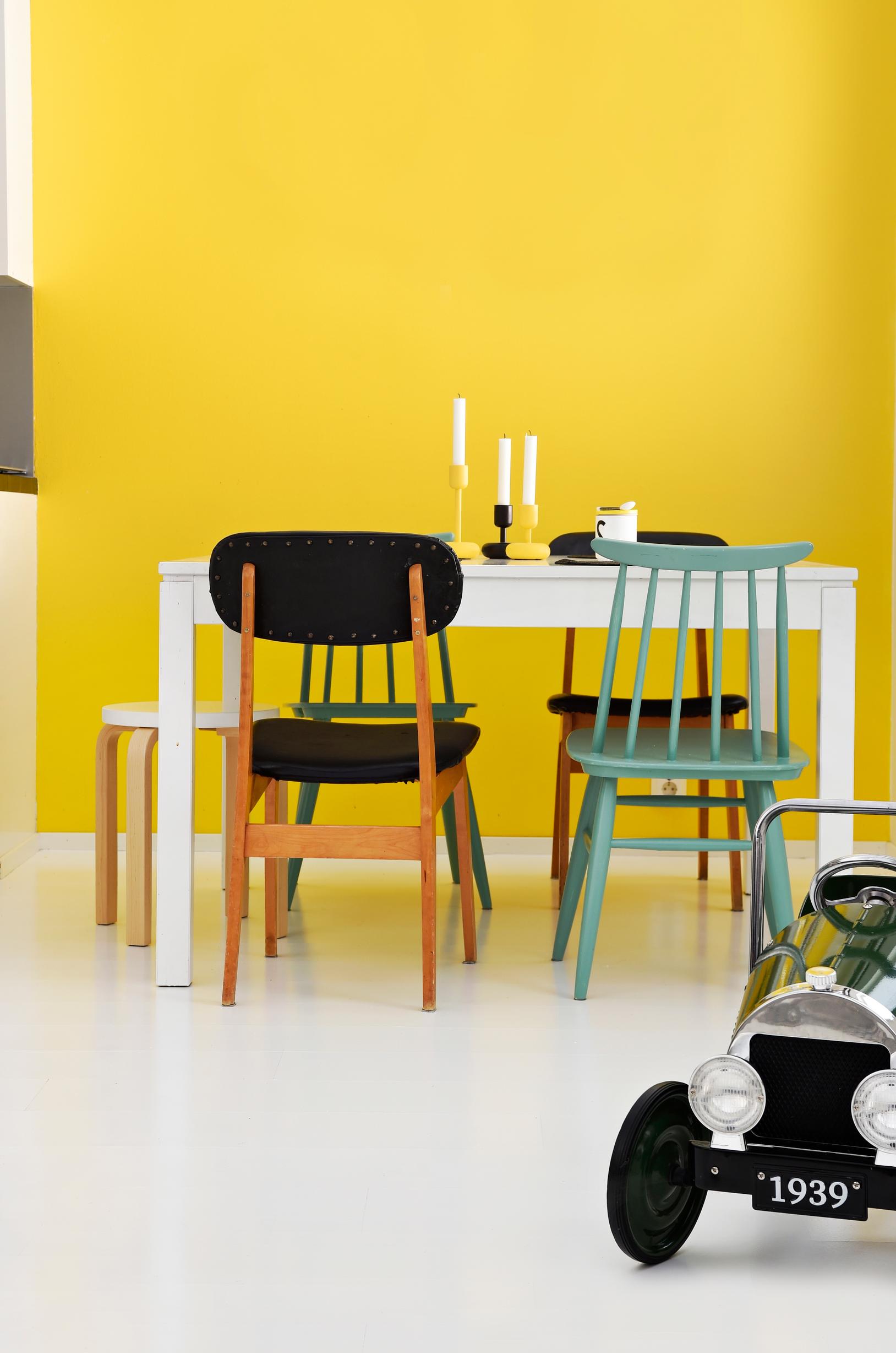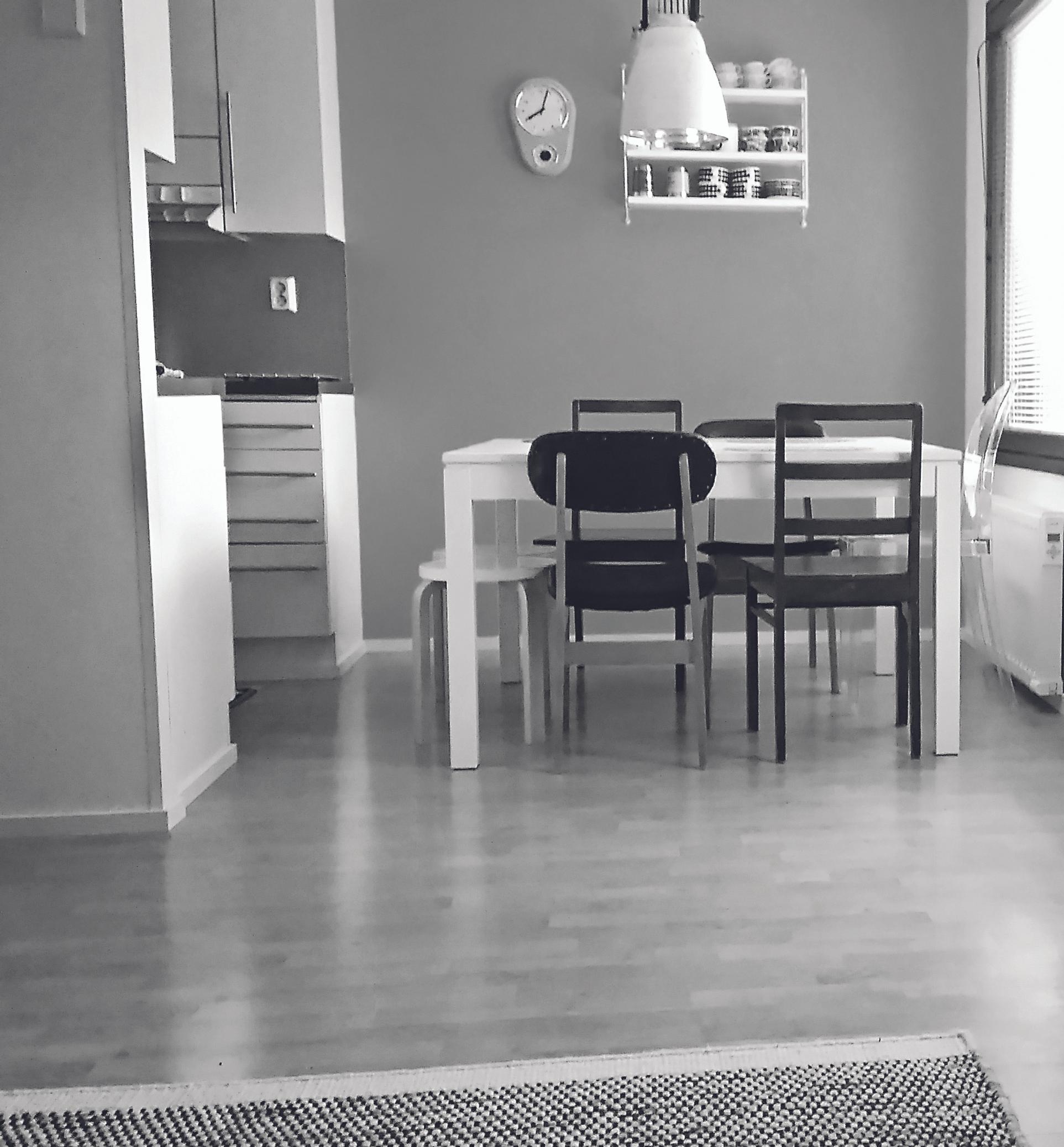 Valkoiset lattiat saavat huoneet näyttämään neliöitään suuremmilta ja valoisammilta. Vaikka lattiat ovat lapsiperheessä kovassa käytössä, pienet elämän jäljet eivät haittaa – ennemminkin ne luovat rustiikkista lankkulattiatunnelmaa. Parasta on, että lattialle saatiin lisää aikaa ja juuri sellainen ilme kuin toivottiin. Laminaatin vaihto uuteen tai toiseen pintamateriaaliin olisi ollut paljon isompi urakka.