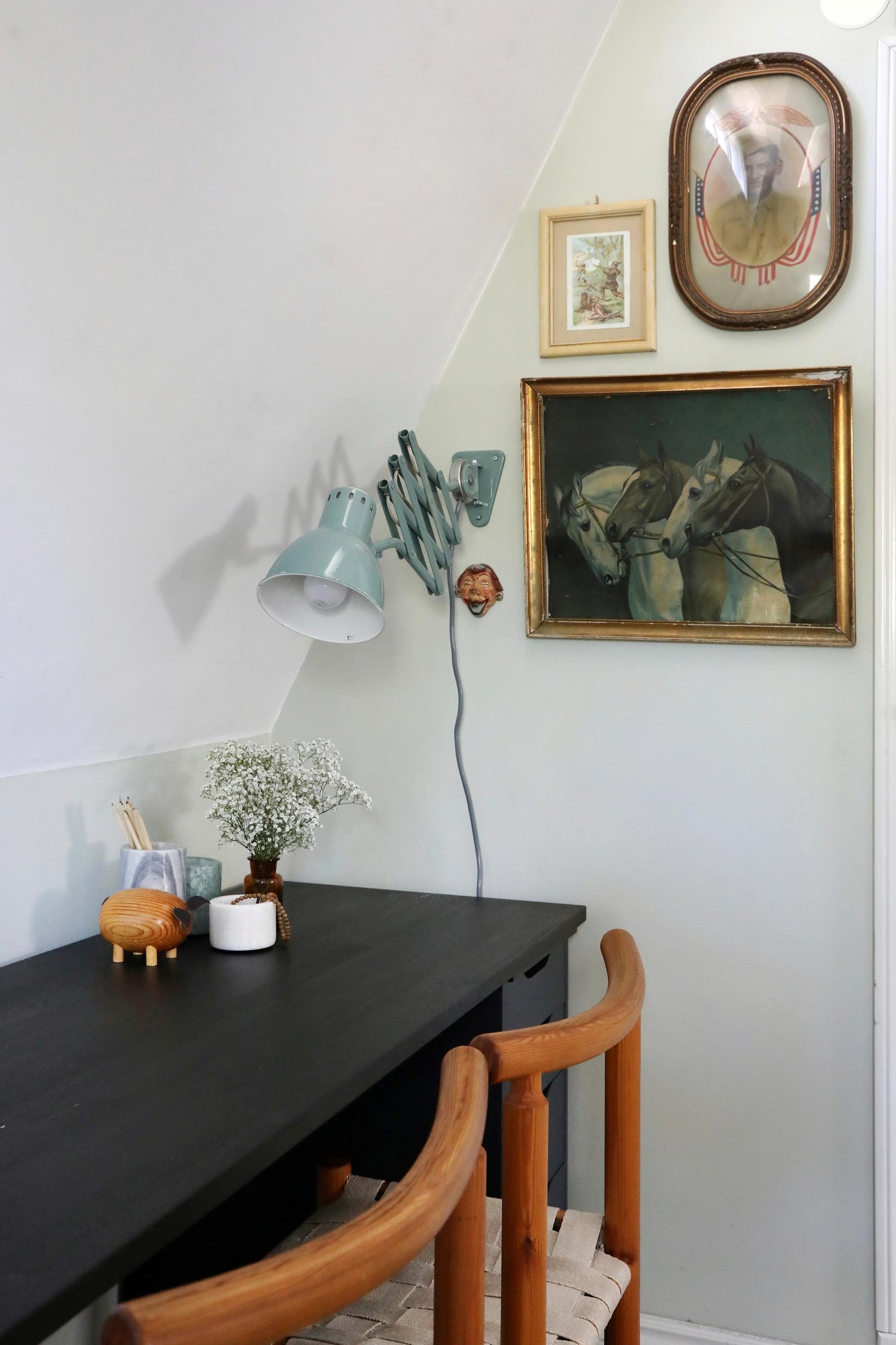 – Murretut värit sopivat 20-lukuun. Olemme halunneet kaikessa kunnioittaa vanhaa taloa ja sen värimaailmaa, Linda sanoo.