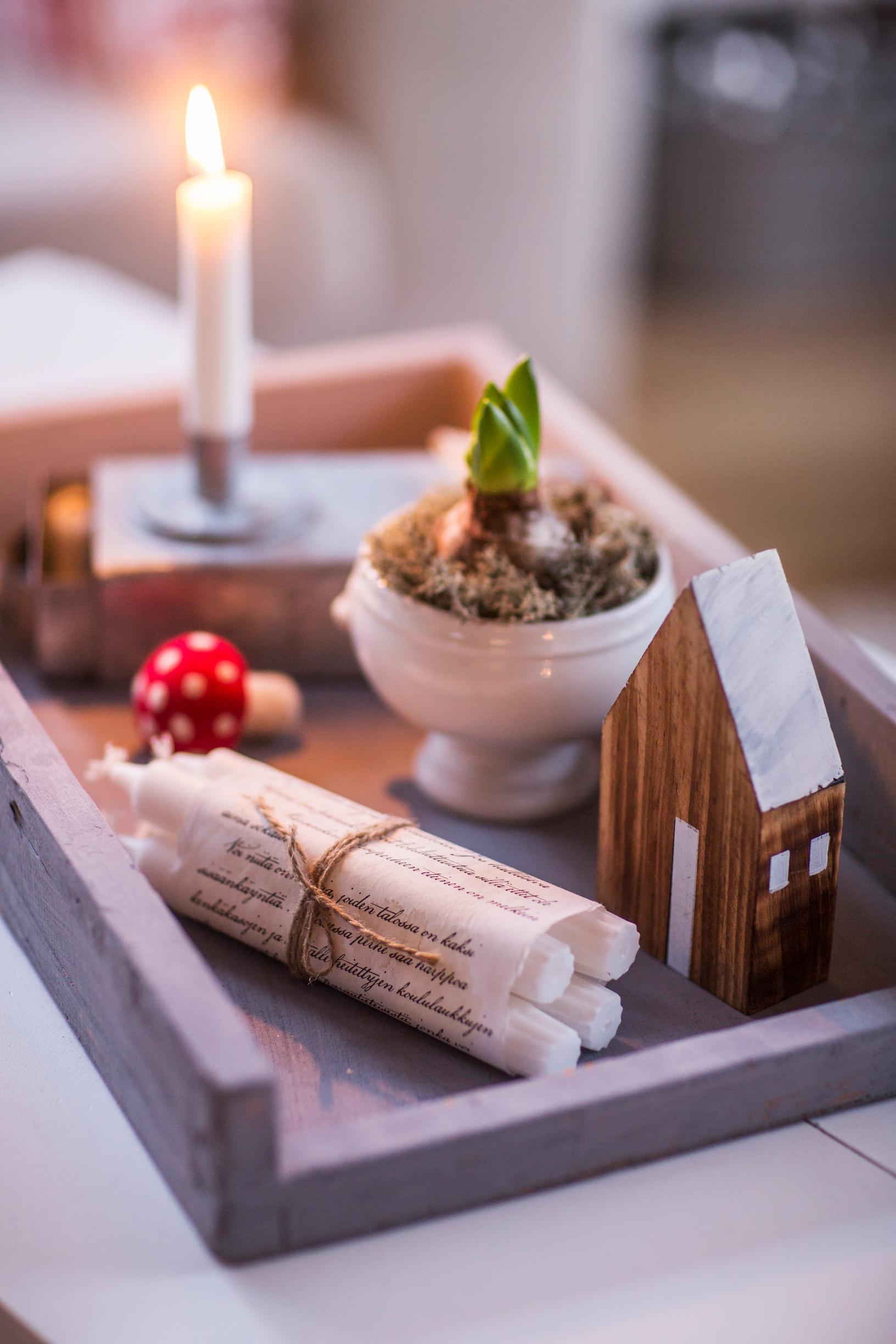 Vanhoissa arkisissakin esineissä on ajatonta kauneutta! Vaaka oli Anna-Marin pitkäaikainen haave ja löytyi lopulta Huuto.netin kautta. Mailegin hyväntuuliset tontut levittävät iloista joulumieltä talon kaikkiin huoneisiin.
