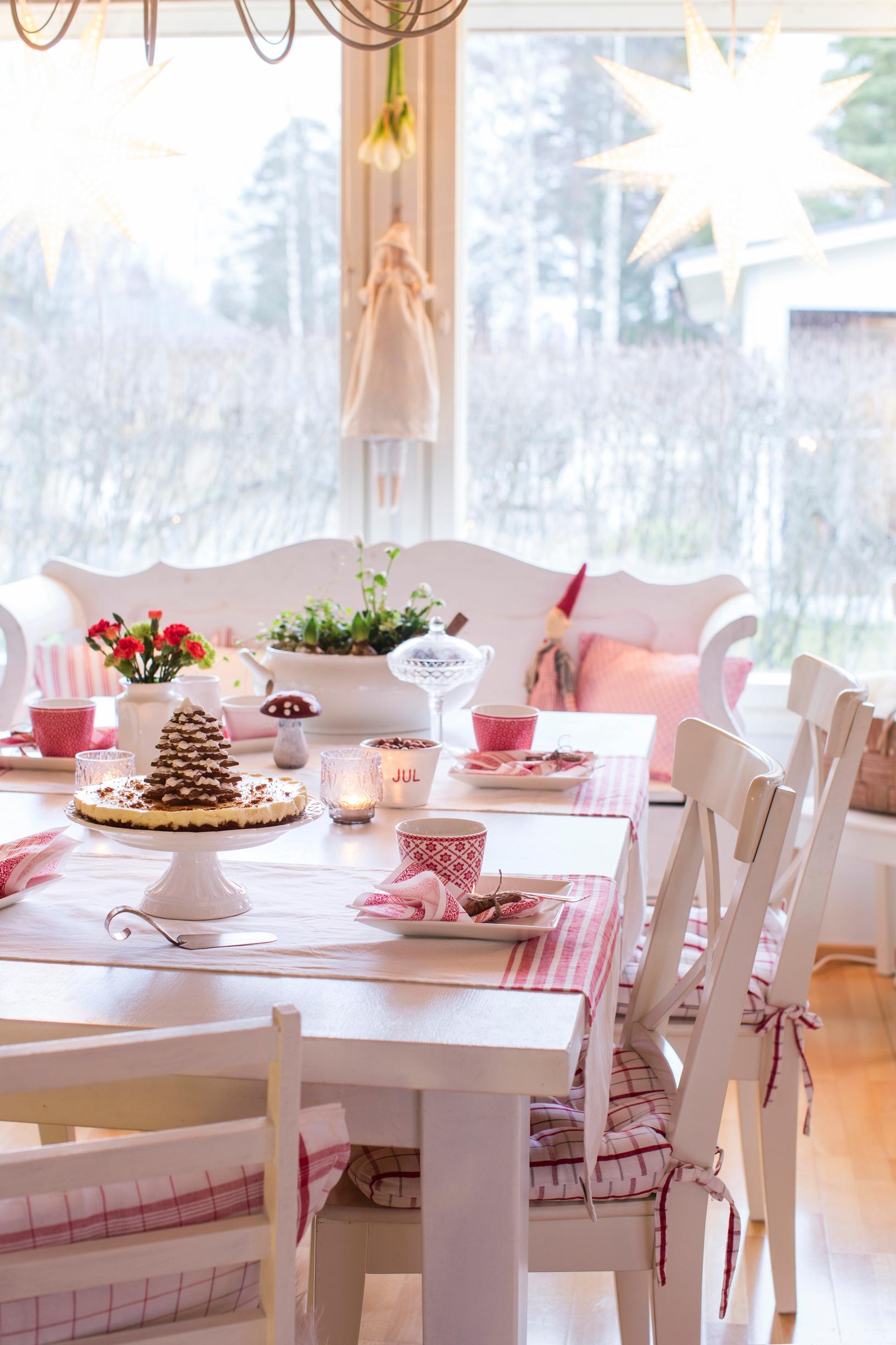 – Alan valmistautua jouluun yleensä lokakuun lopussa, joten olen ehtinyt olla jo täydessä vauhdissa monta viikkoa. Jouluvärini on punainen. Se tuo minusta mukavaa vaihtelua sisustukseemme, joka on suurimman osan vuotta melko yksivärinen, Anna-Mari kertoo.