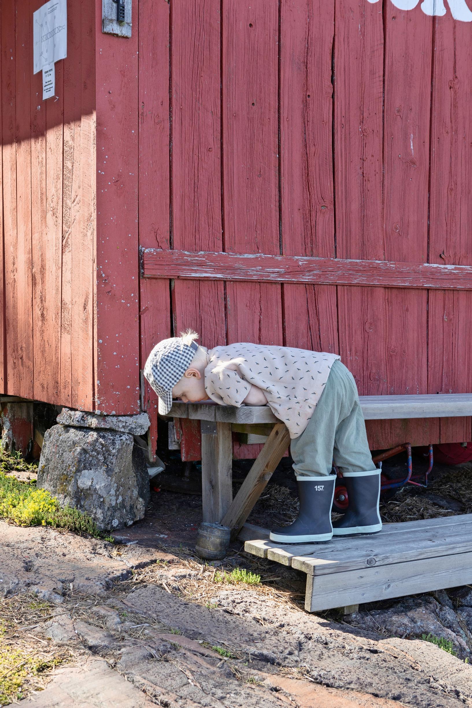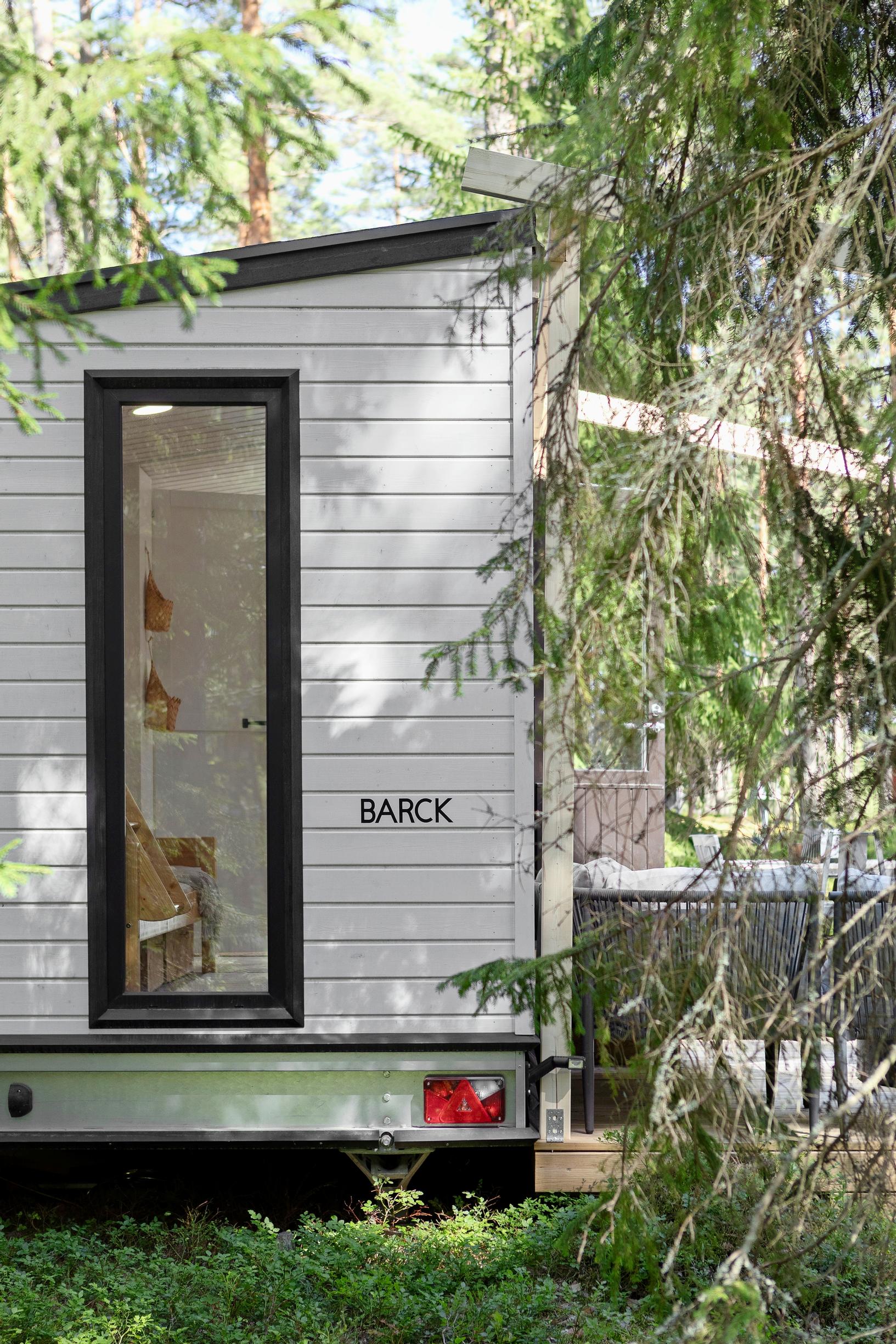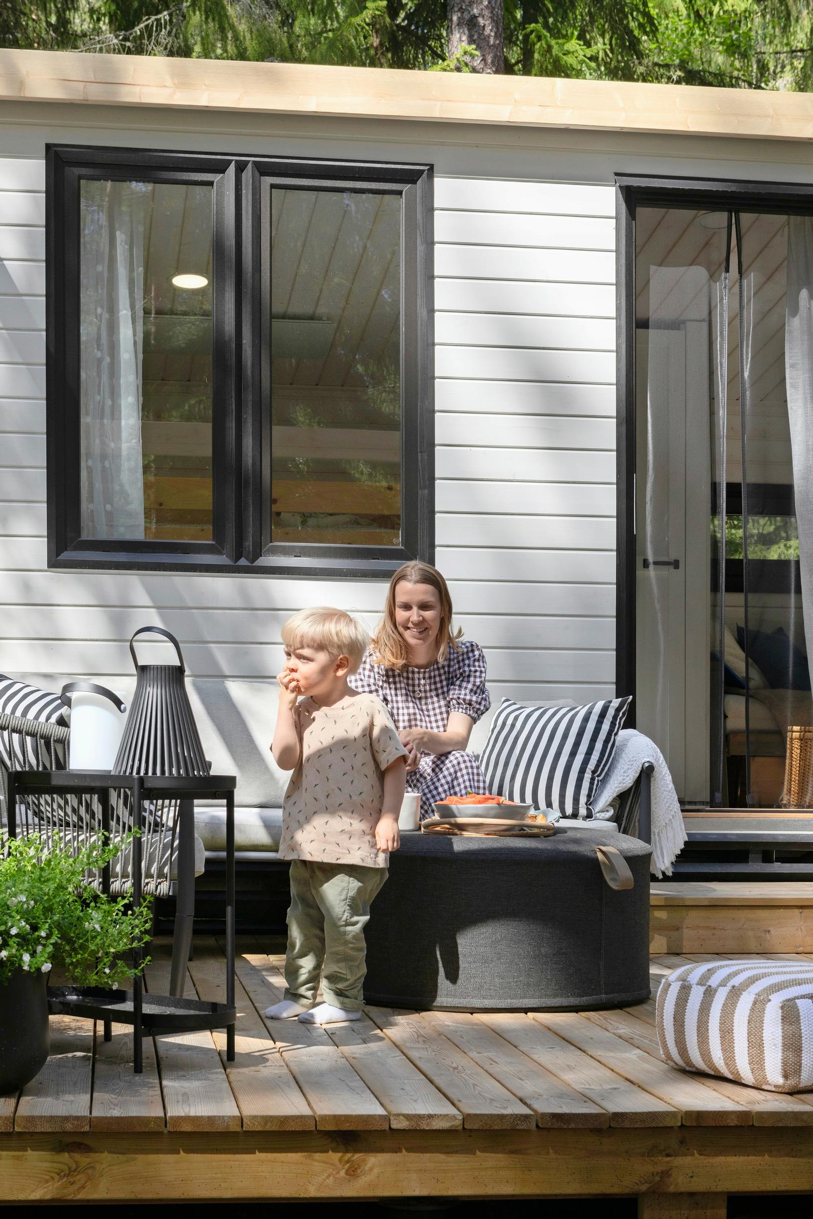 Lapsuudenkesät asuntovaunussa innostivat Petra Barckin hankkimaan modernin mökkivaunun omalle perheelle. Lomakylässä lossimatkan päässä luonto tulee lähelle: ”Mökillä elämä on yksinkertaista.”