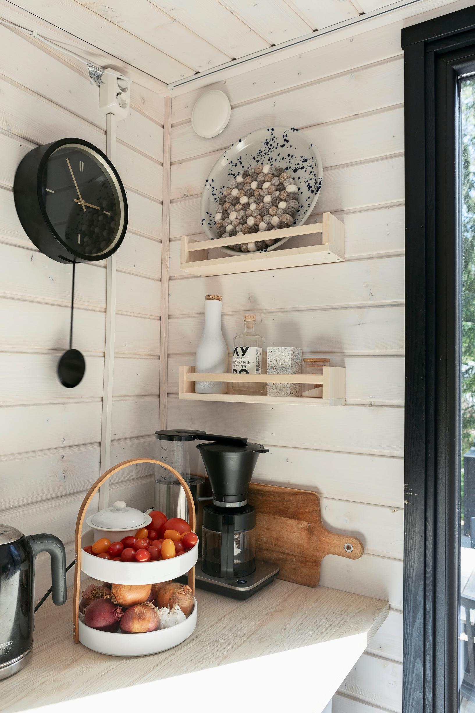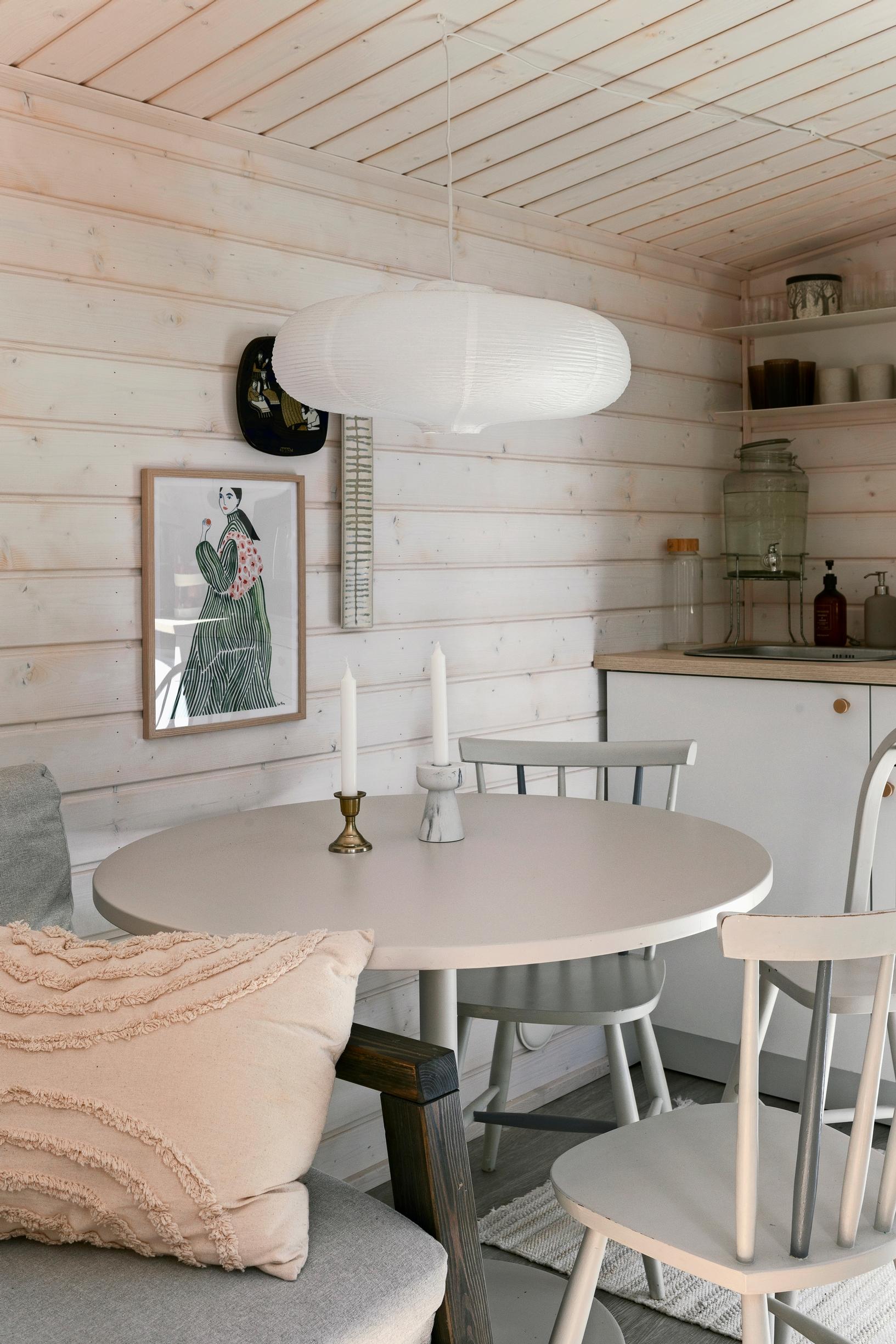 Pidän myös siitä, että elämä mökillä on yksinkertaista. Ruokaa laitetaan ulkona grillissä tai airfryerillä. Nautin myös siitä, että täällä ei ole yhtään turhaa tavaraa. Jokaiselle tavaralle on käyttötarkoitus ja paikka.