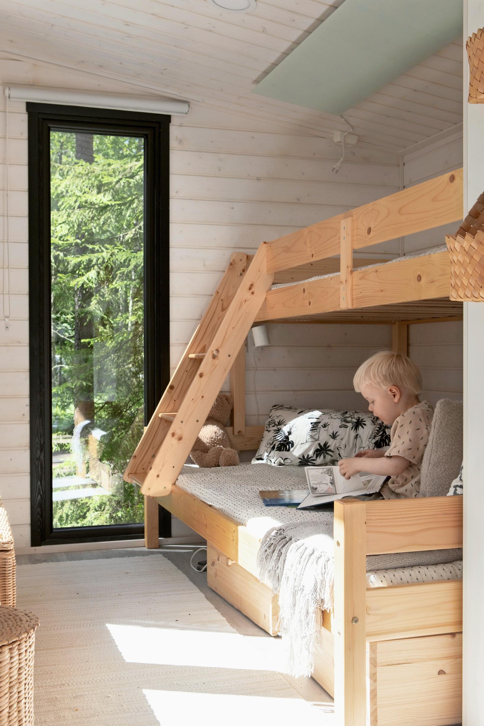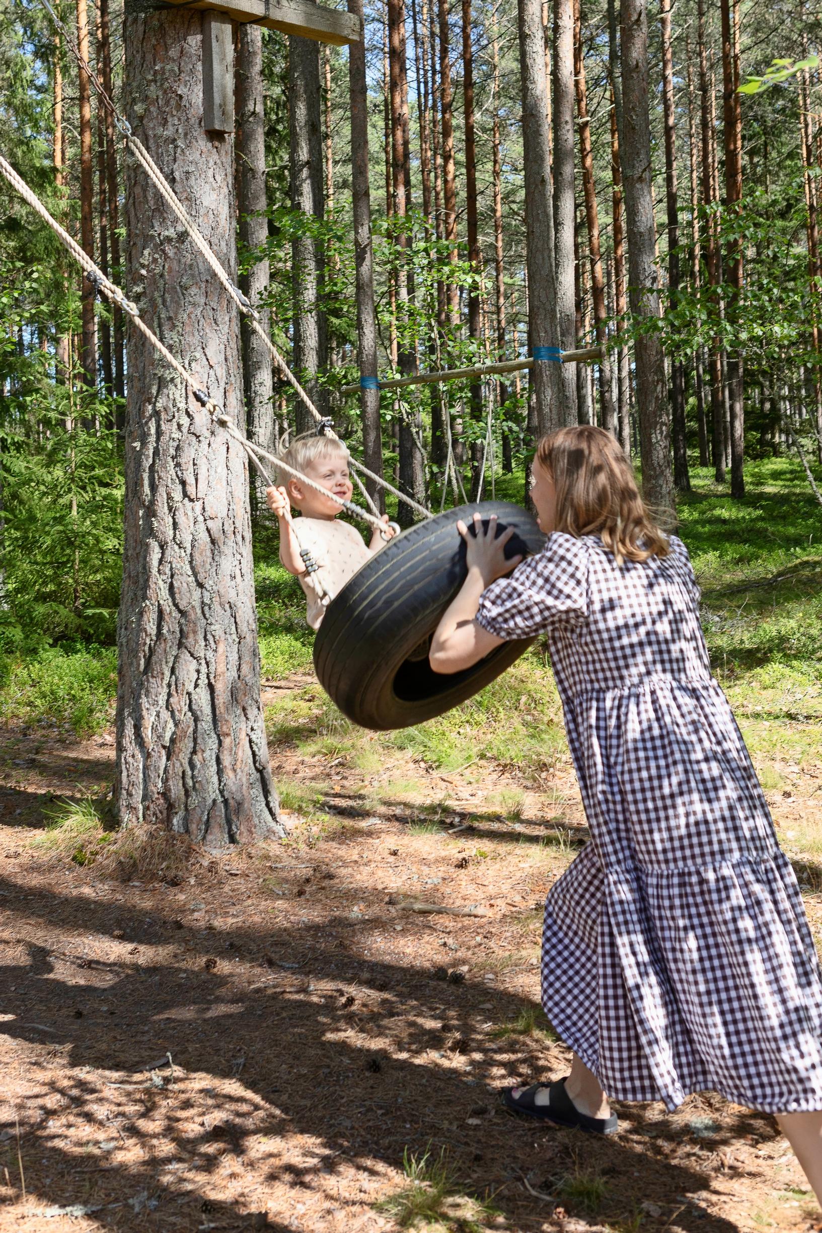 Viikonloppu kaupungissa ei tunnu samalta. Kaupungissa meillä on tilaa noin 100 neliötä, mökissä noin 19 neliötä. Vaihtelu ja paikan vaihtaminen on tärkeää. Täällä luonto tulee lähelle, ja sisällä tulee oltua todella vähän. Voimme istua terassin reunalla ja napsia mustikoita suoraan suuhun männyn juurelta. Kaupunkikodin piha on pieni ja paahteinen, ja naapurit ovat ihan vieressä.