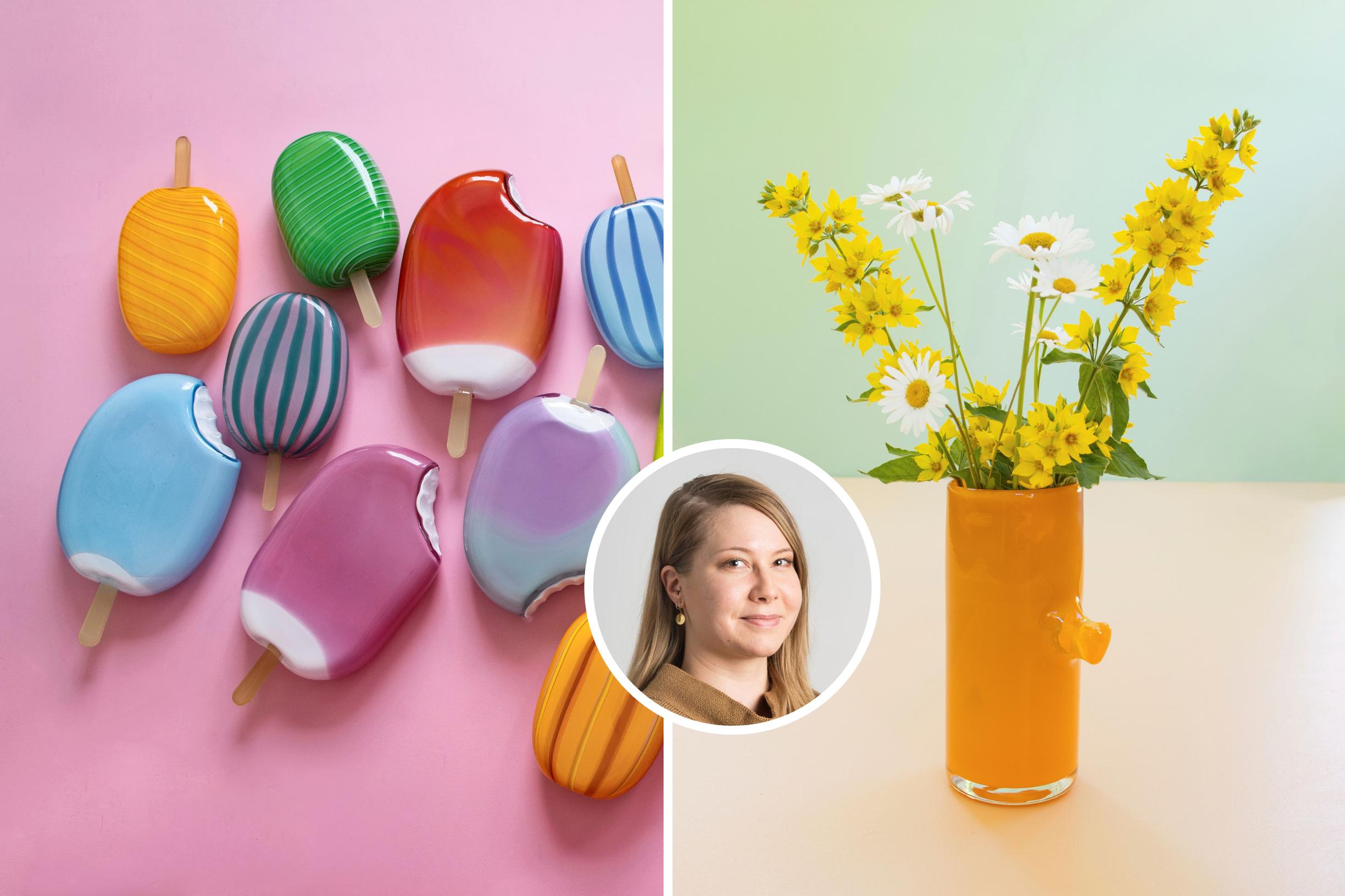Lasiset jäätelöveistokset kantavat Paula Pääkkösen muistoja lapsuudenkesistä – ja nostavat veden kielelle. Värit palasivat henkisen kriisin jälkeen puhaltaja-taiteilijan elämään ja vastustamattomiin lasiteoksiin.