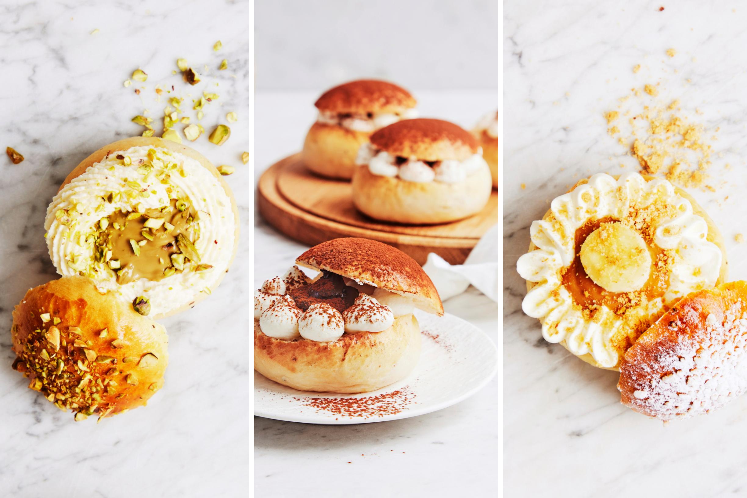 Uudet täytteet ihastuttavat nyt laskiaispullissa. Onko suosikkisi kenties pistaasi ja valkosuklaa, suklaalta ja aprikoosilta maistuva sacherkakkutäyte vai lemon curdin ja italialaisen marengin hurmaava liitto?