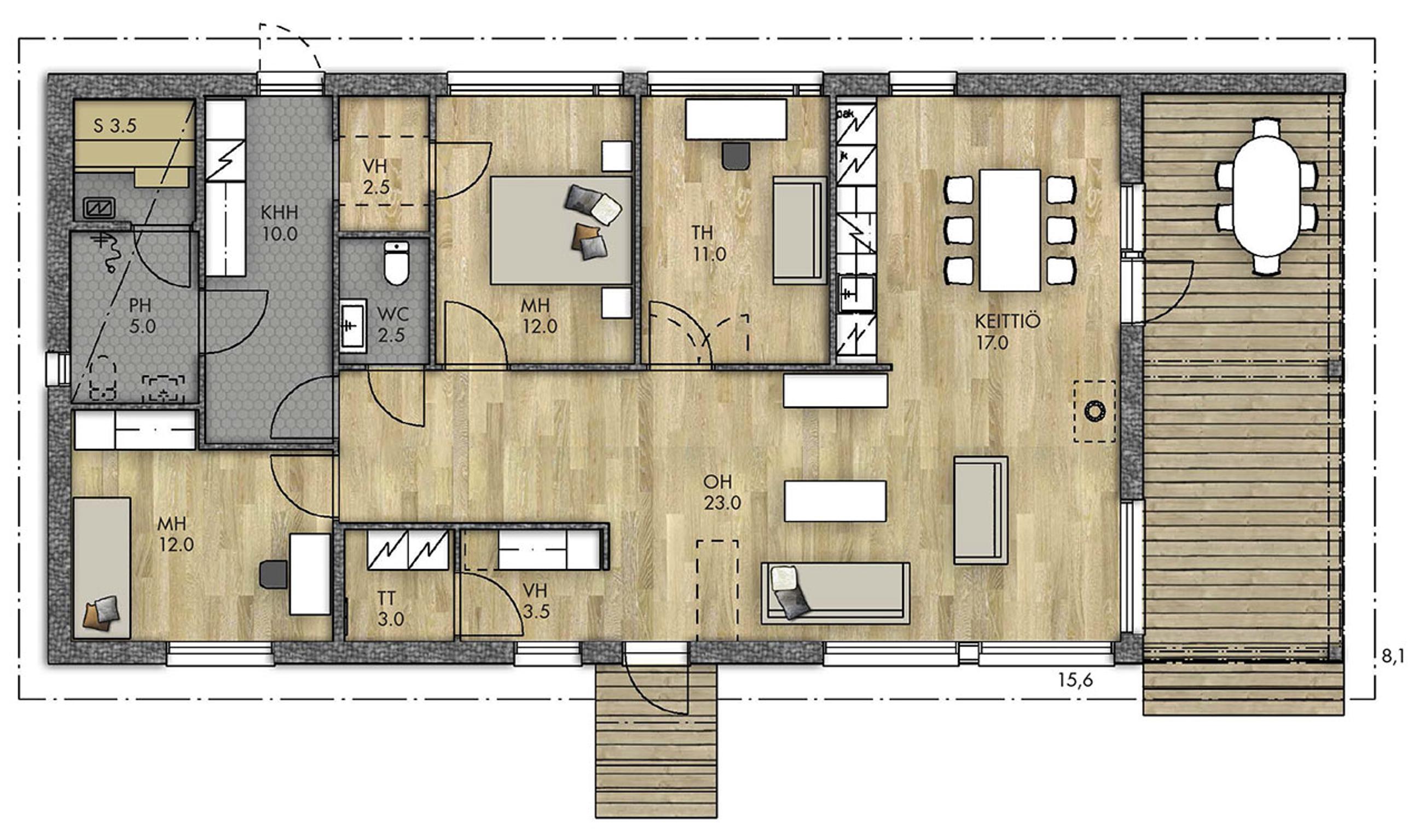 Lato-mallin olohuoneeseen voi valita kolme ikkunavaihtoehtoa: