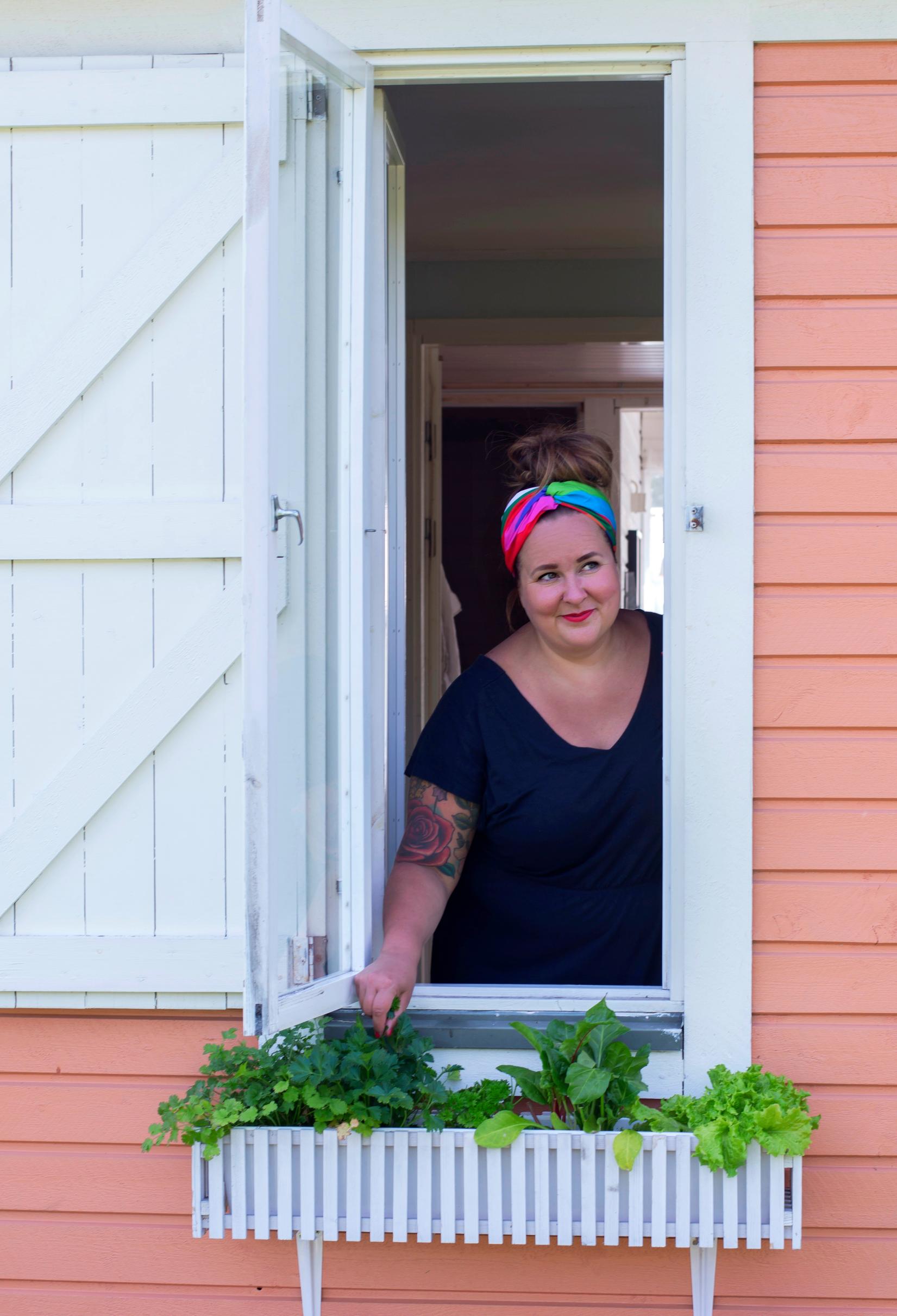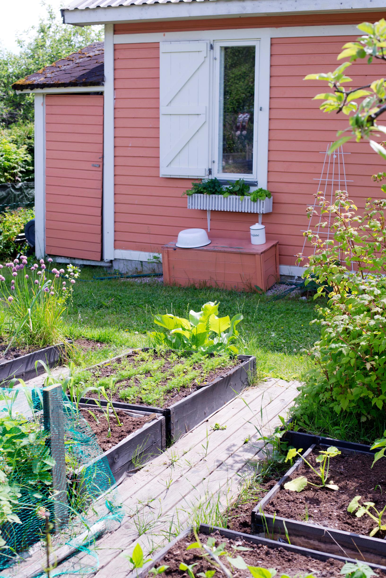 Saa täällä olla omassakin rauhassa, jos sitä haluaa. Minä vietän paljon aikaa puutarhassa. Se on henkireikäni arjen keskellä. Saatan tulla tänne kesällä myös arkisin työpäivän jälkeen. Puutarhatöissä näkee konkreettisesti työn tuloksen, ja se on palkitsevaa. Pihalla kasvaa juureksia, raparperia, chiliä ja yrttejä sekä karviaisia, viinimarjoja, omenaa ja mangomarjaa. Lisäksi on paljon kukkia, joita rakastan.