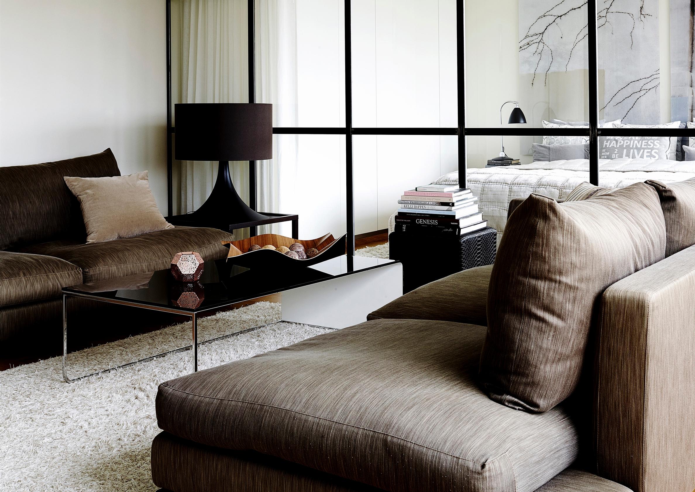 Levollinen hotellitunnelma syntyy yhtenäisestä värimaailmasta, laadukkaista materiaaleista ja harkiten valituista koriste-esineistä.