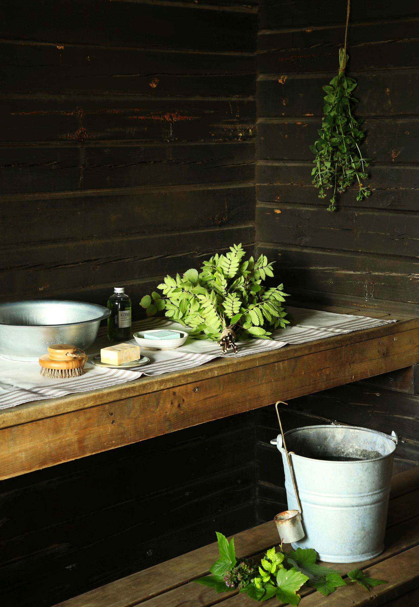 Kesäiseen saunahetkeen ja mökkikylpylän rentouttaviin hetkiin sopivat yrteillä ja metsänantimilla ryyditetyt suolakuorinnat, naamiot, kylpyvedet ja ihoa ravitsevat öljyt.
