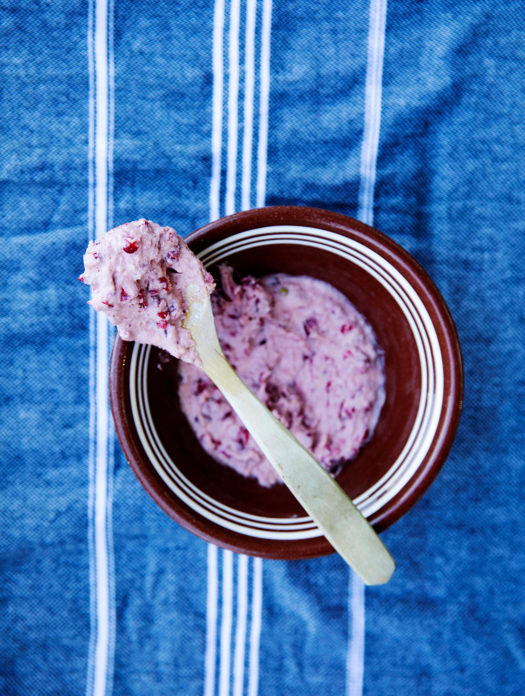- Muussaa marjat haarukalla. Sekoita kananmuna joukkoon.