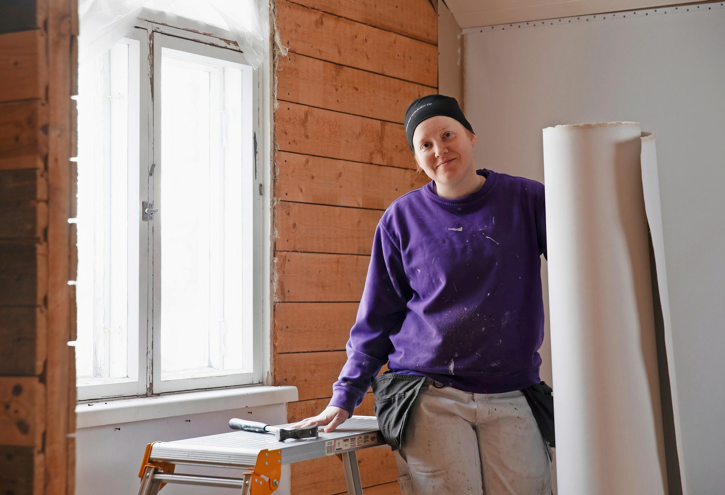 Anneli Kinnunen ryhtyi 19-vuotiaana maalaamaan ja tapetoimaan yrittäjänä. Hän asentaa yhä useammin pinkopahveja, sillä perinteiselle tekniikalle on kysyntää remonttikohteissa.