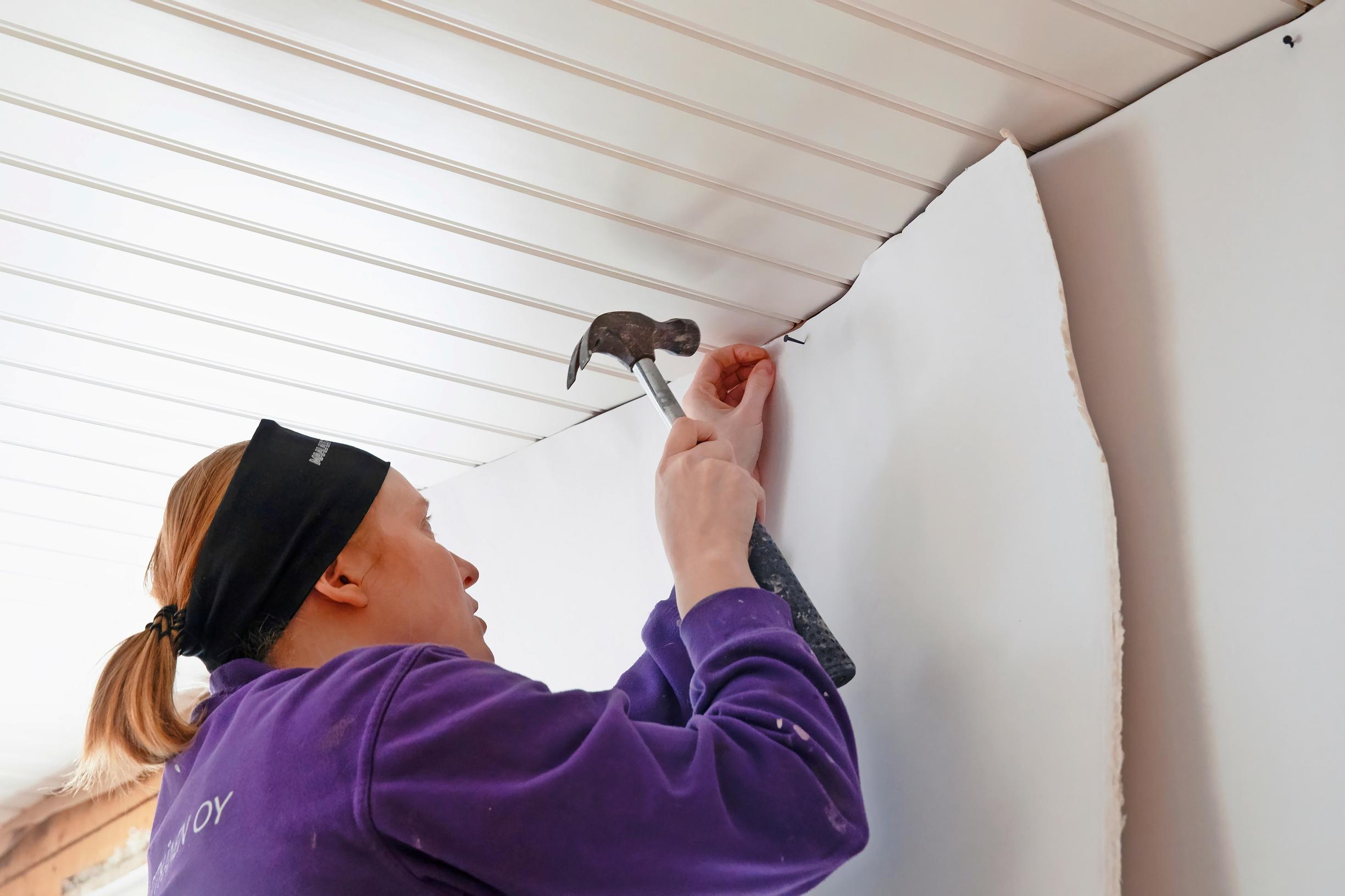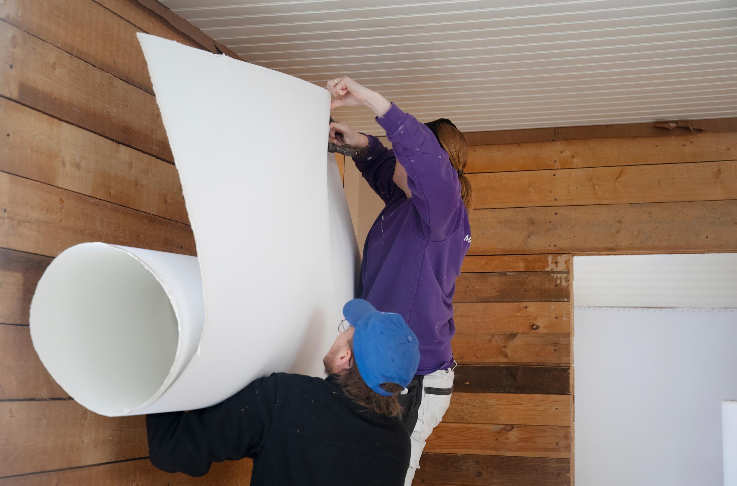 Lue työohje huolellisesti ja hanki kaikki tarvittava etukäteen. Kannattaa myös katsoa netistä ohjevideoita. Leikkaa vuodat ylipitkiksi, niin on varaa, jos seinä tai pahvi on vino. Tekijöitä kannattaa olla kaksi, sillä yksin on vaikea käsitellä leveää pahvia. Tee koko seinä kerralla ja anna kuivua. Kuivuminen vie parista tunnista puoleen päivään. Odota, että näet työn onnistuneen, ennen kuin lyöt naulat pohjaan asti. Maalaa tai tapetoi vasta seuraavana päivänä.