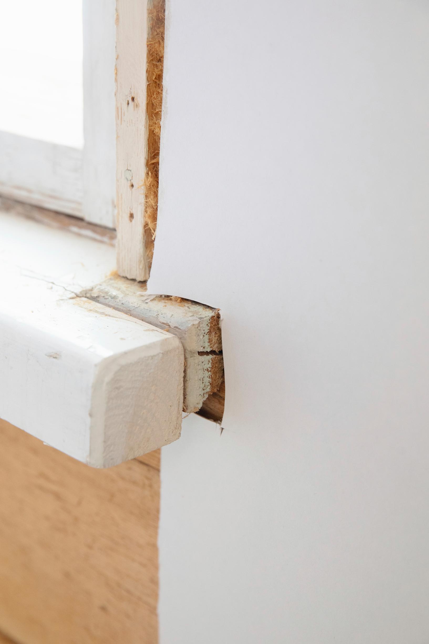 Repeämiä on aika helppo korjata, ja jos pahvi on vain vähän kuprulla jostain kohdasta, sen voi suoristaa. Kun pahvi avataan, kostutetaan ja naulataan takaisin, se suoristuu. Jos koko seinä loimottaa ja pahvi on pahasti pussilla, sitä ei saa enää pelastettua.