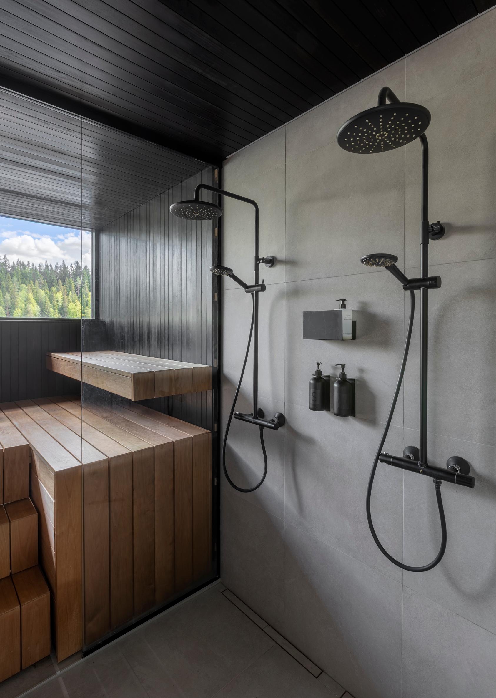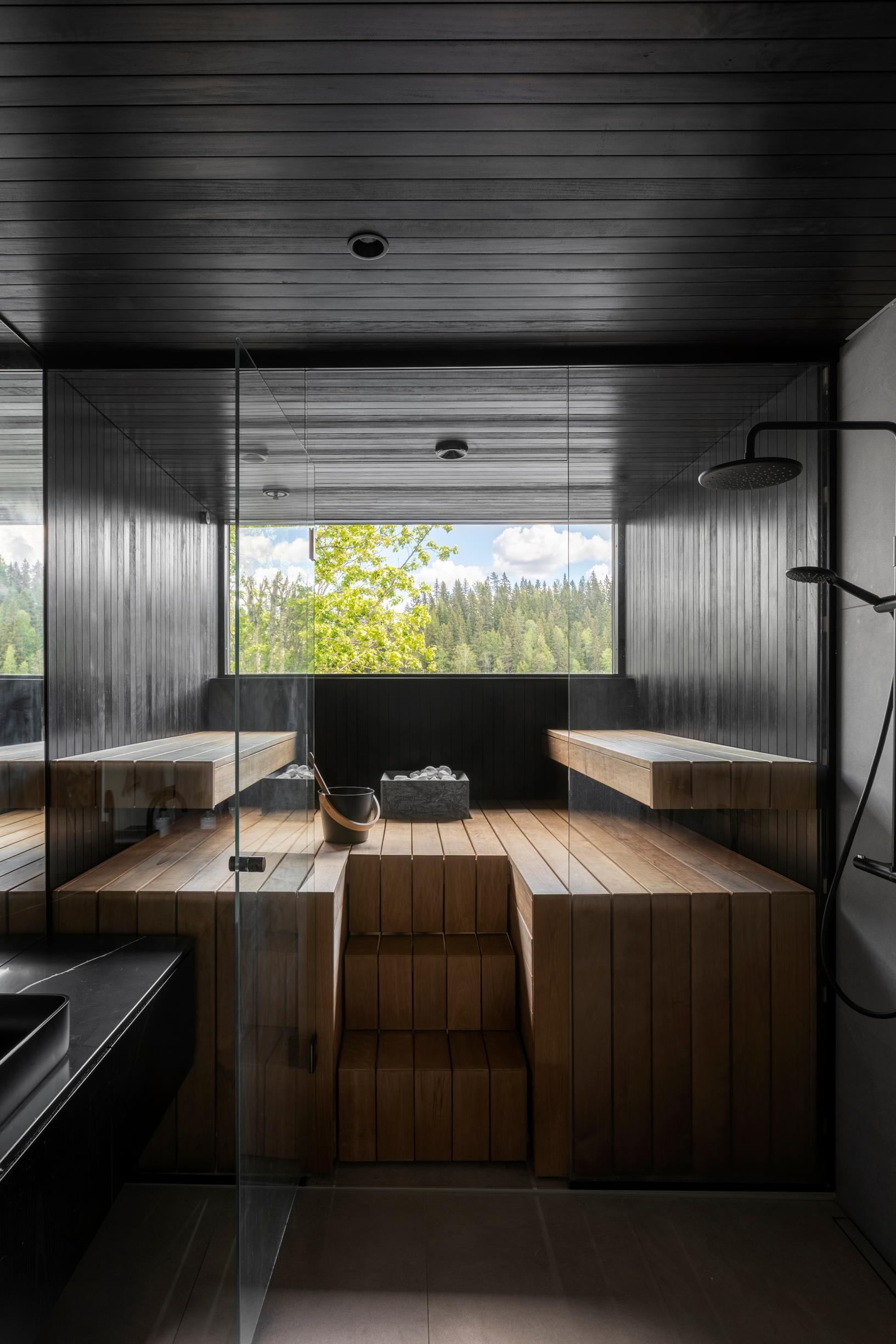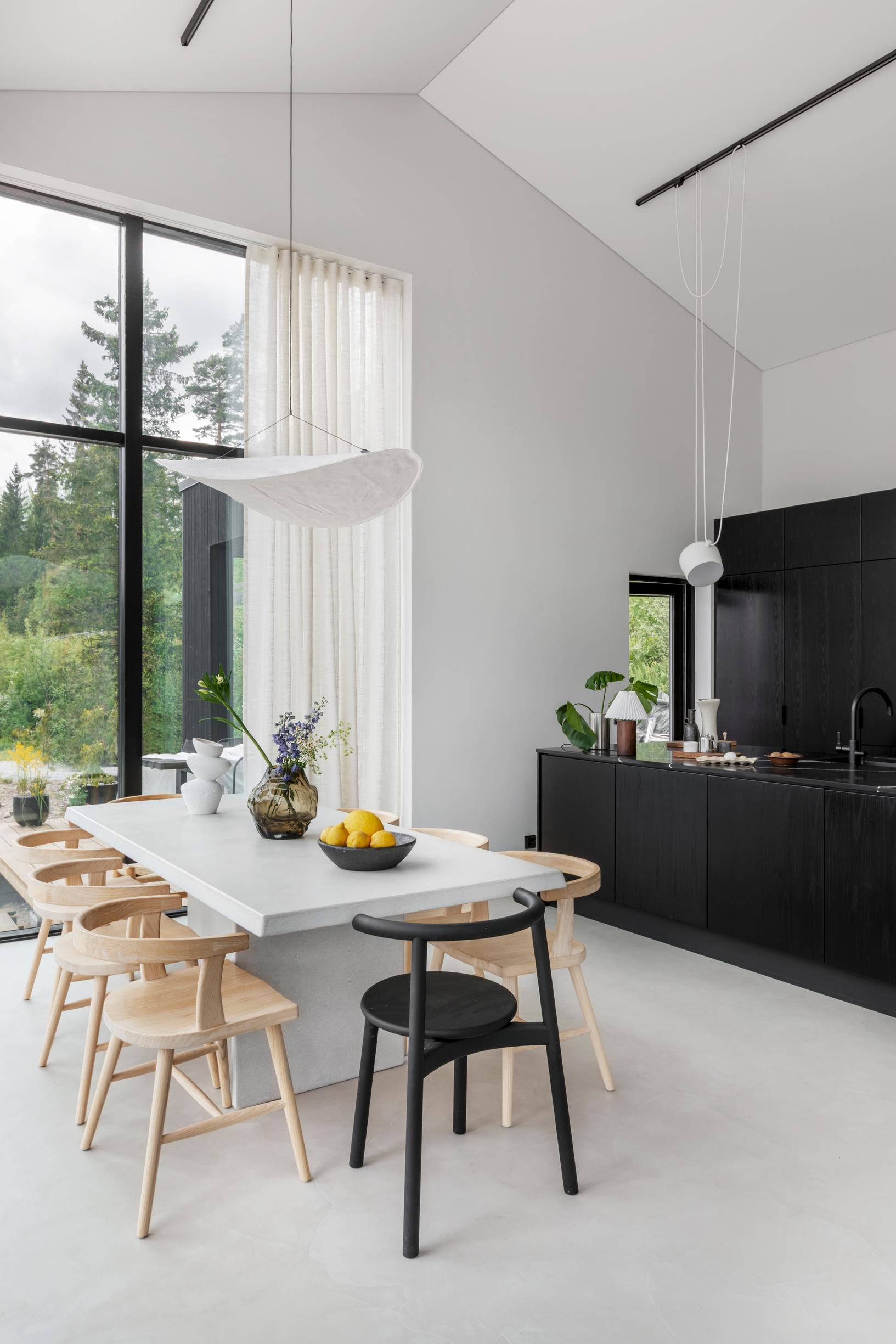 Meillä oli hyvin tarkat kriteerit yksityiskohtia myöten: listoja ei tule mihinkään, ikkunat lähtevät heti lattiasta, ja sähkökalustus on minimalistista automaation ansiosta. Suunnittelussa otimme huomioon kyllä kaiken: missä rentoudumme, missä pesemme hampaat, ja mistä koirat kulkevat rantaan uimaan.