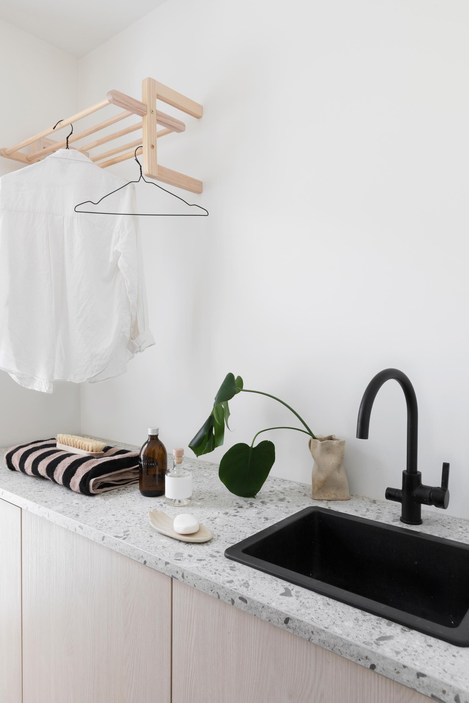 Sisustussuunnittelija Maikki Hevari otti uudessa talossaan huomioon ihan kaiken mutta sisusti intuitiolla. Vaaleudessa yllättävät pesämäinen musta makuuhuone ja nerokkaasti hyödynnetyt rakentamisen jämämateriaalit.