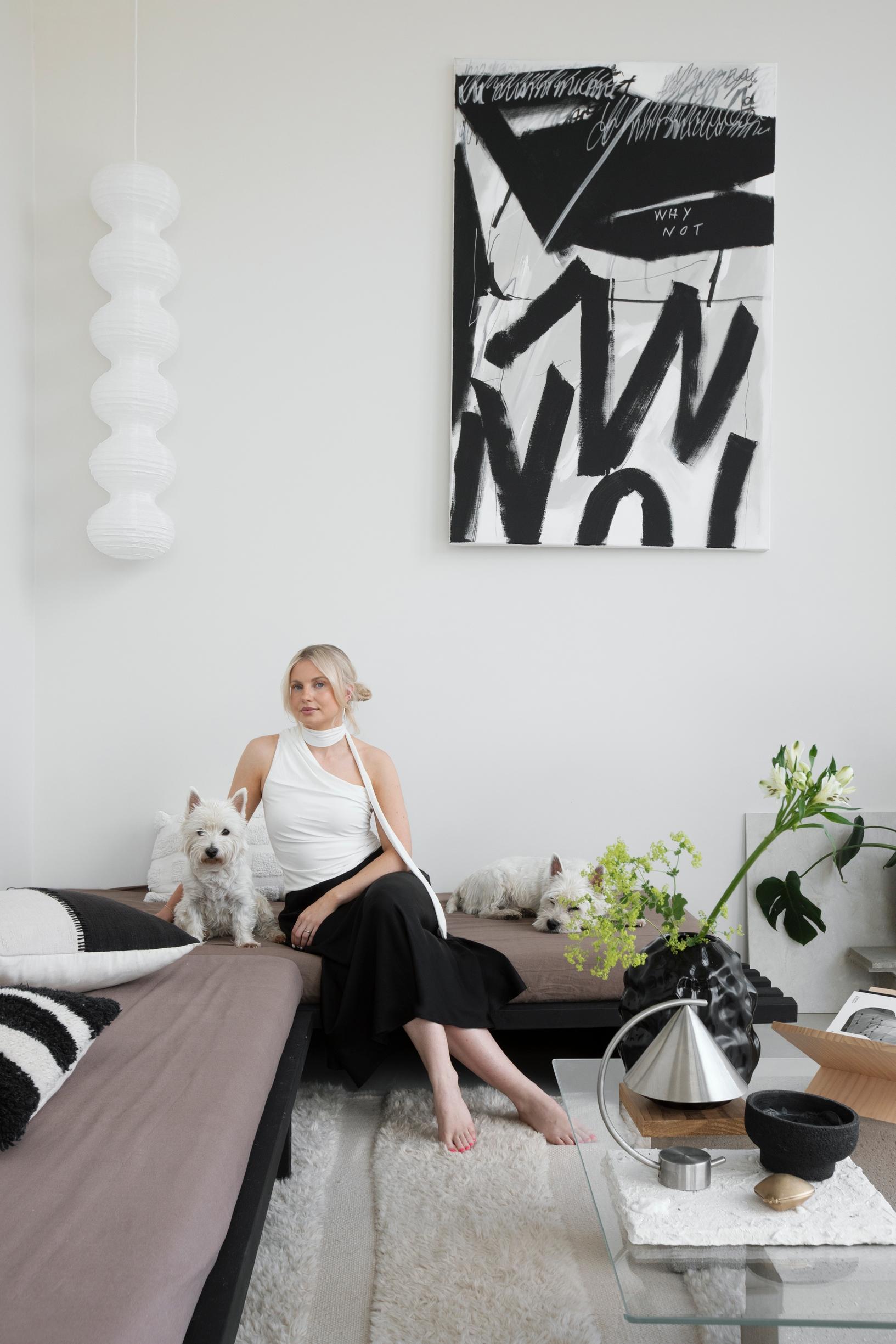 asukkaat Sisustussuunnittelija Maikki Hevari, 30, ja insinööri Teemu Varis, 30, sekä ylämaanterrierit Milo ja Tintti. Instagram: @maikkihevari.