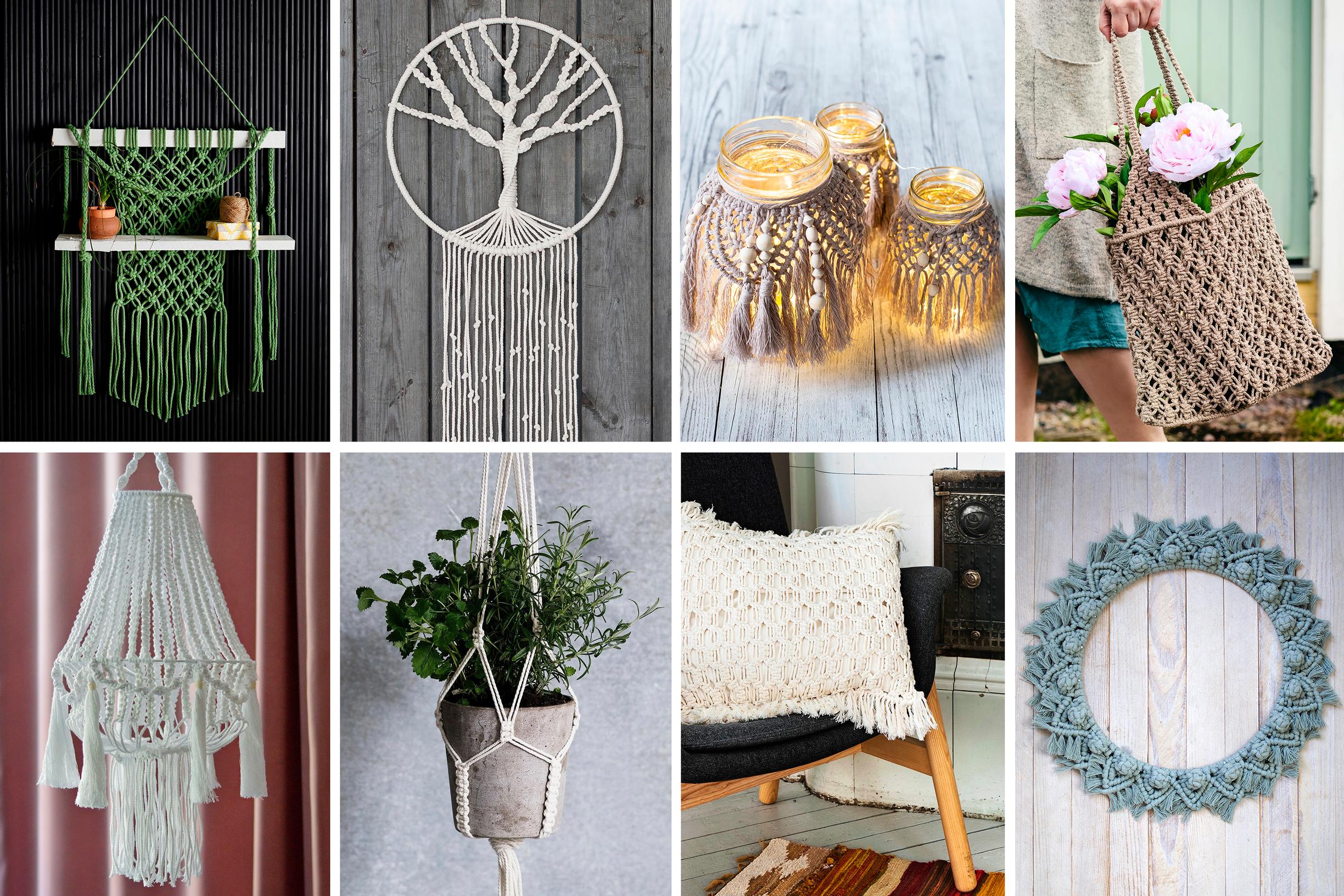 Makramee on monelle tuttu tekniikka seinätekstiileistä, mutta solmimalla voi tehdä kaikenlaisia käyttöesineitä ja koristeita. Kokosimme yhteen innostavimmat ohjeemme!