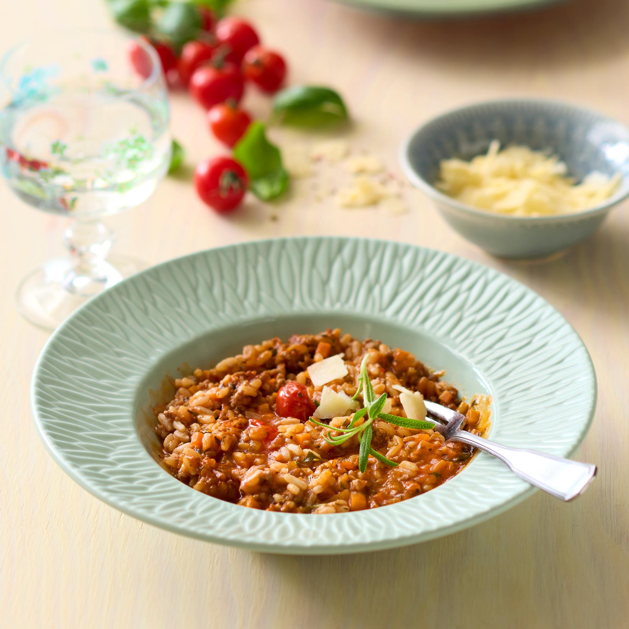 Risotto bolognese on runsas ja gluteeniton annos, jossa tuttu ragú saa uuden muodon risottoriisin kanssa. Suomalaisten naudan- ja porsaanlihojen voimakkaat maut, pitkään haudutettu tomaattikastike, punaviini ja yrtit sulautuvat täyteläiseen risottoriisiin.
