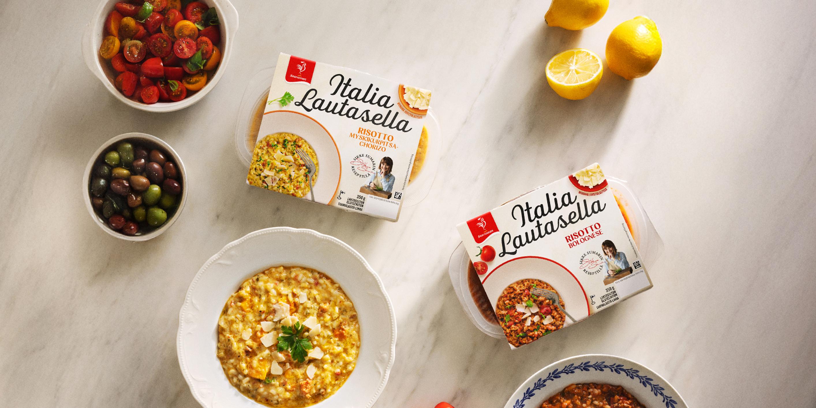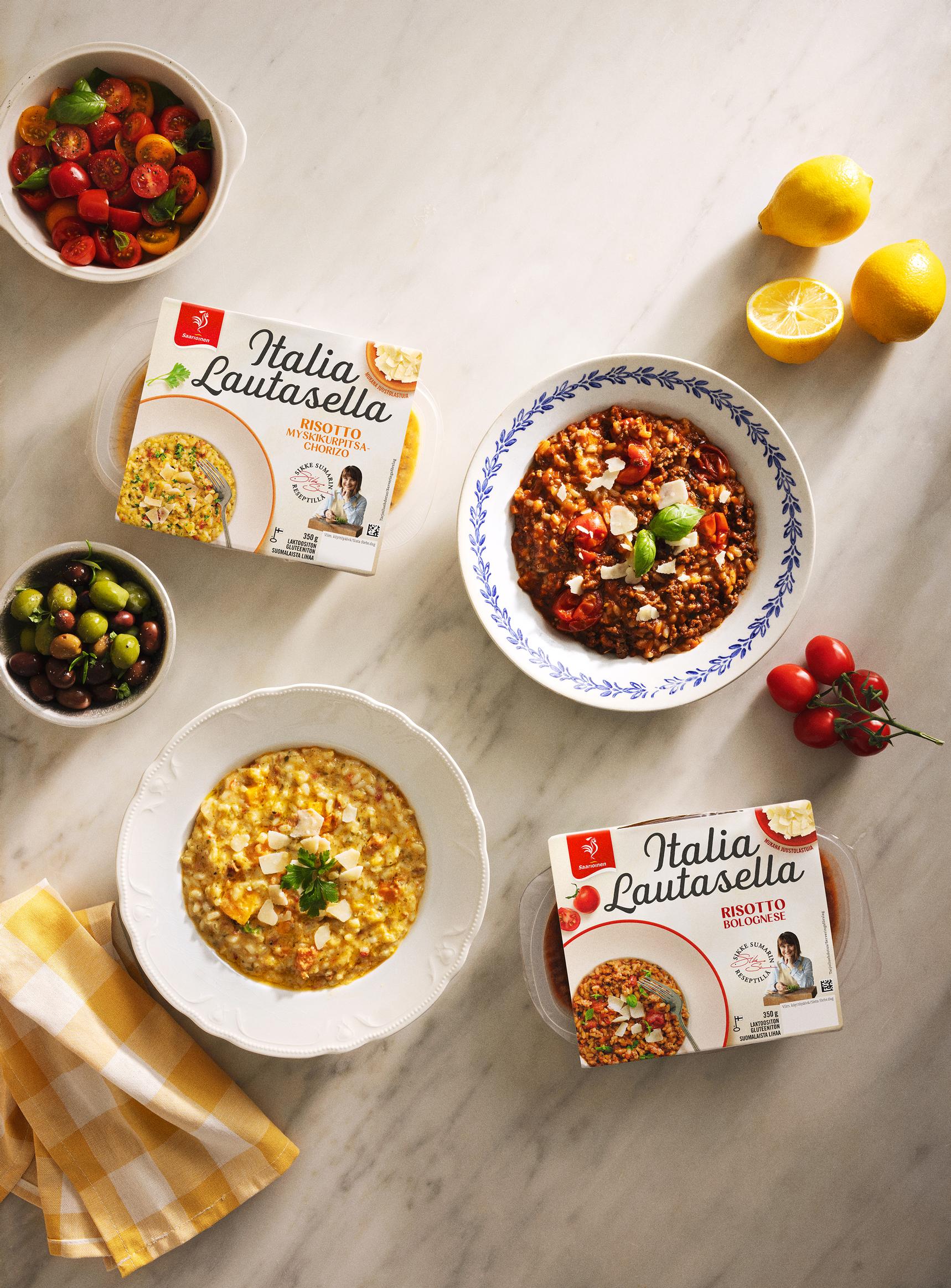 Italialaisen keittiön taika piilee yksinkertaisuudessa: muutamasta raaka-aineesta syntyy täyteläinen ja samettinen risotto, joka hellii kaikkia aisteja. Italia Lautasella -tuotesarjassa Sikke Sumarin italialaiset reseptit kohtaavat Saarioisten äitien ruoanlaittotaidon. Tunnettu kokki ja italialaisen ruoan ystävä on ollut mukana kehittämässä sarjan reseptejä alusta lähtien, ja hänen rakkautensa risottoihin välittyy myös uutuuksista.