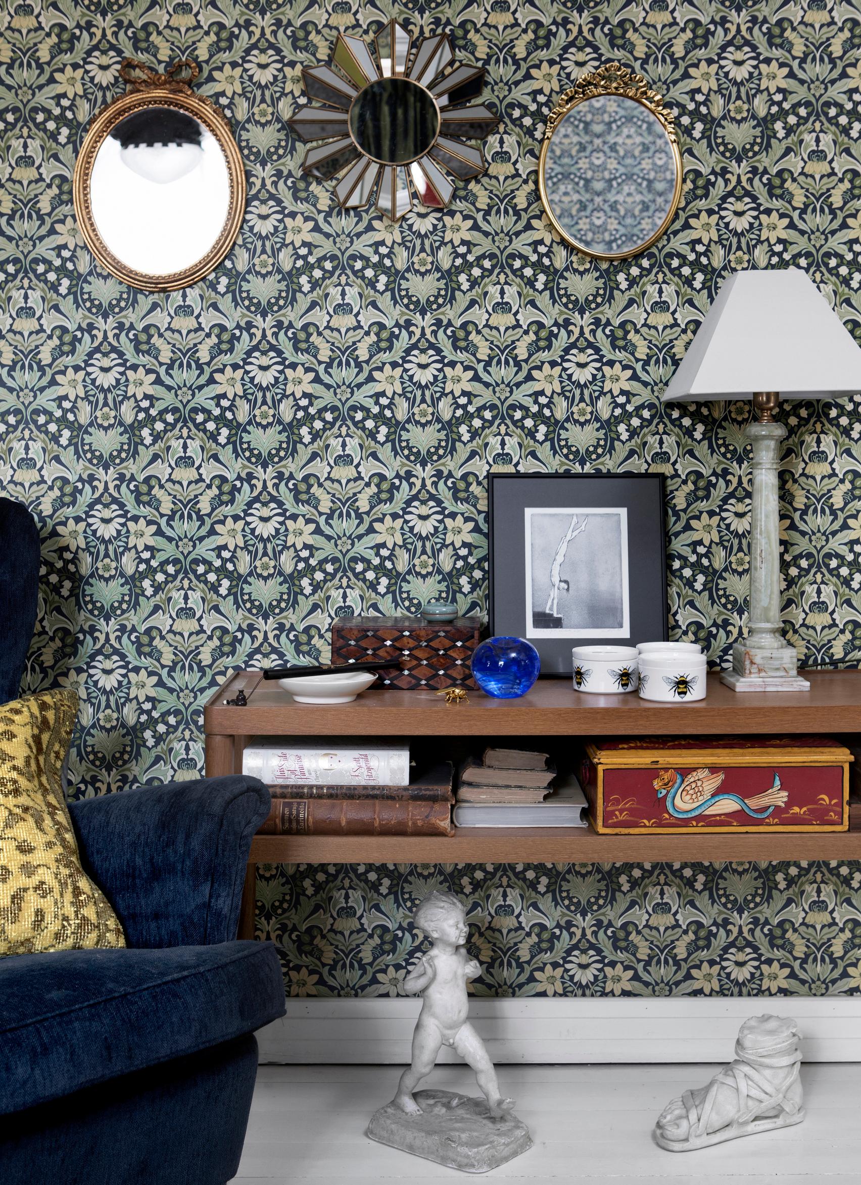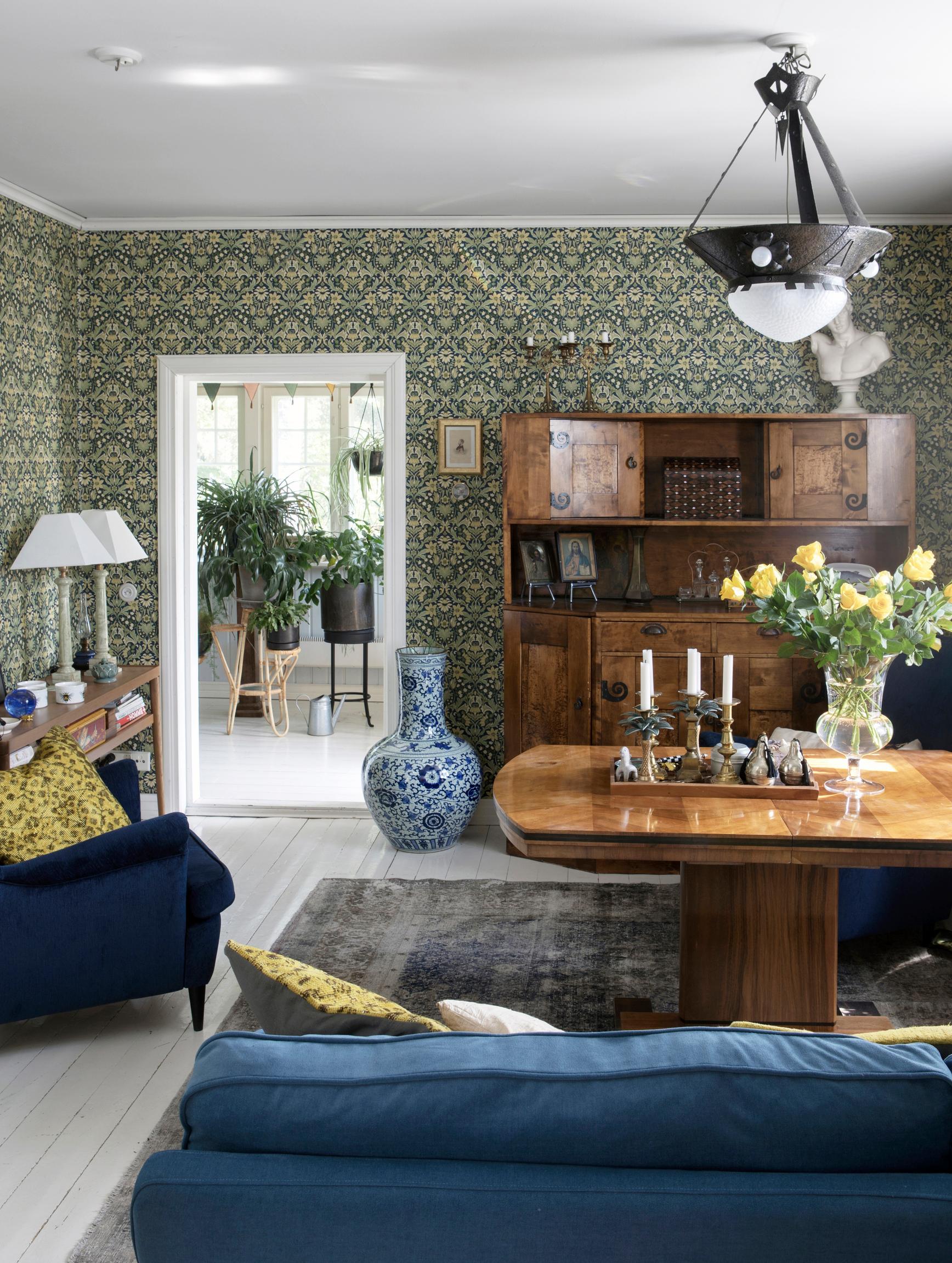Olohuone ja ruokasali vaihtavat toisinaan paikkaa, samoin yläkerran makuuhuone ja kirjasto. Koti elää oman elämisen mukana. Jos jokin tapetti kyllästyttää, sen voi vaihtaa. Maku ja mieli saavat muuttua.