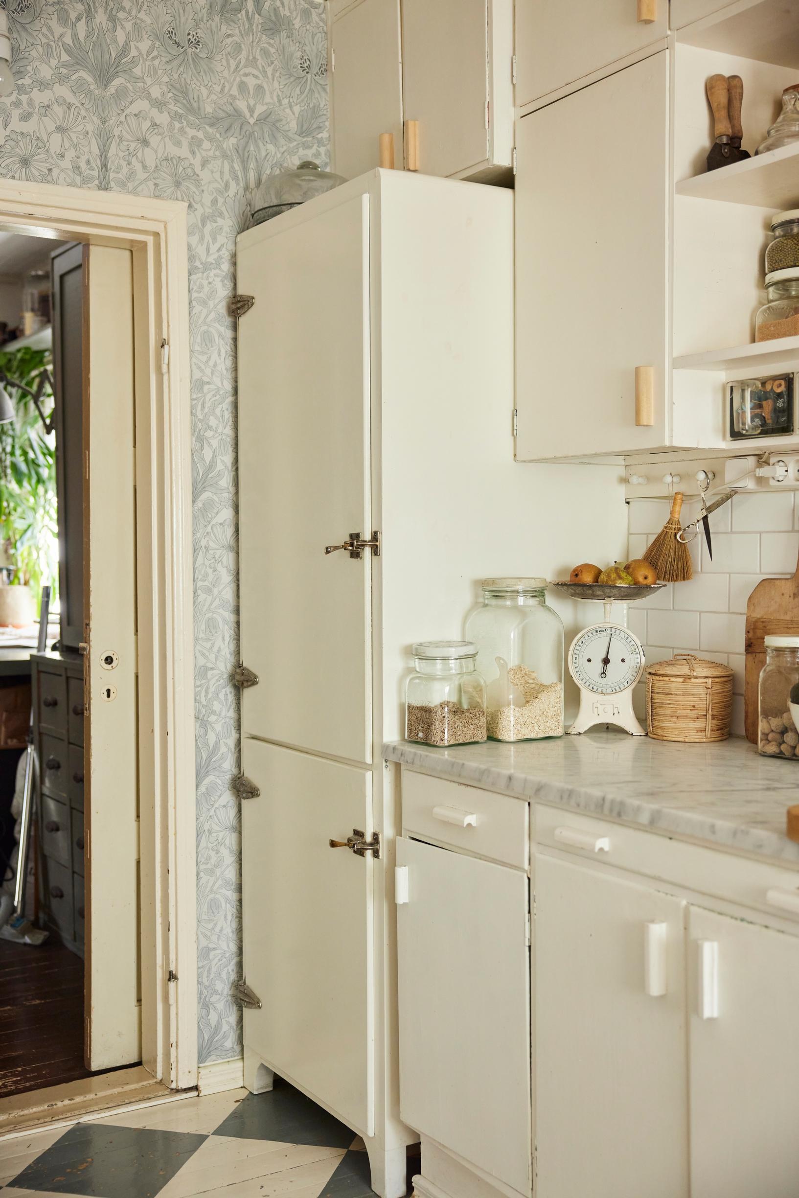Tähän mennessä hulluin projektini taitaa olla omatekoiseen kaappiin integroimani jääkaappi. Olin haaveillut oikein vanhasta jääkaapista, jossa olisi kunnon kahvat ja saranat. Kerran bongasin juuri haluamani tv:n kokkiohjelmassa. Googlettamalla kuitenkin selvisi, että se maksaa lähes kymppitonnin. Sitten keksin, että mitä jos kokeilisin tehdä kaapin itse.
