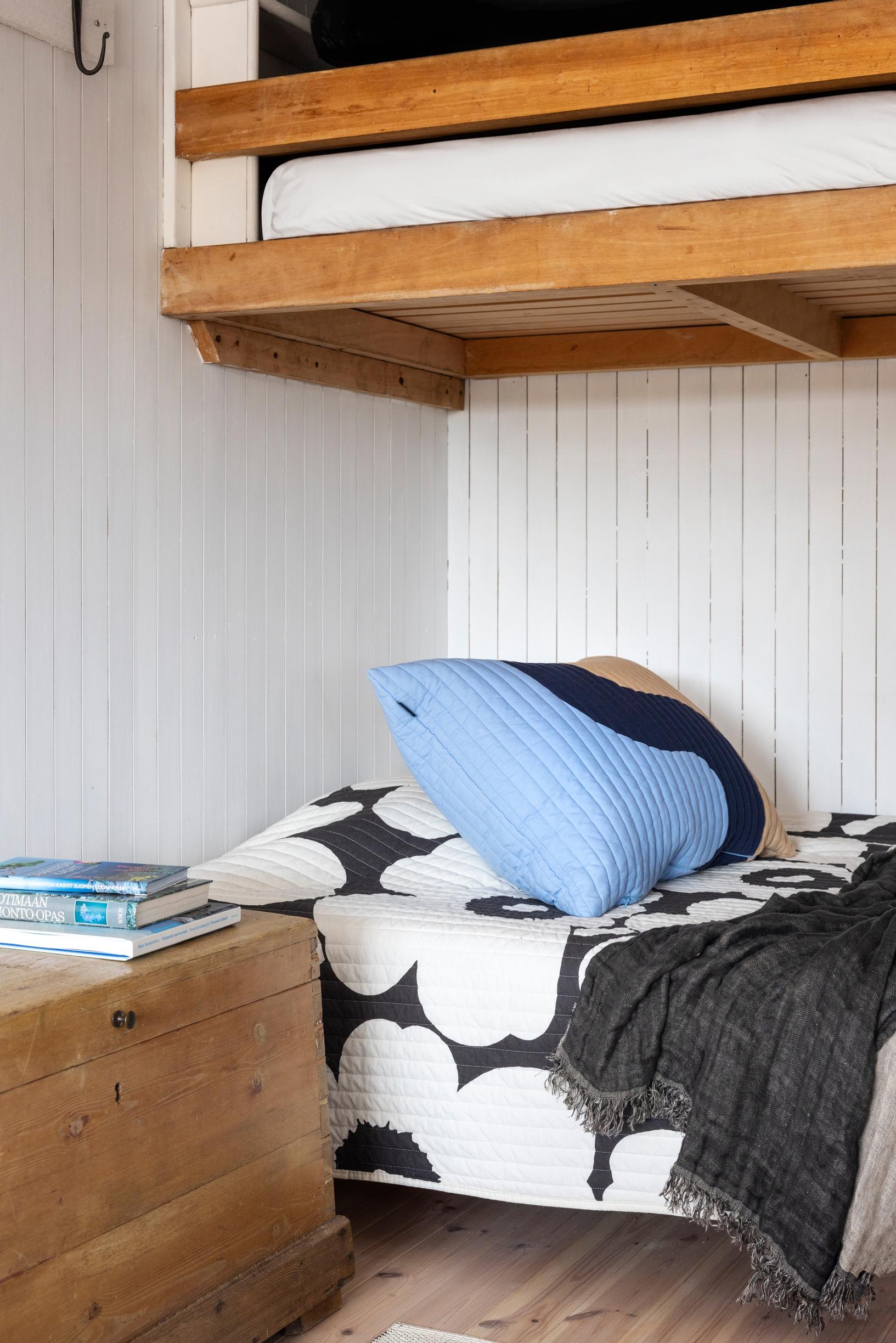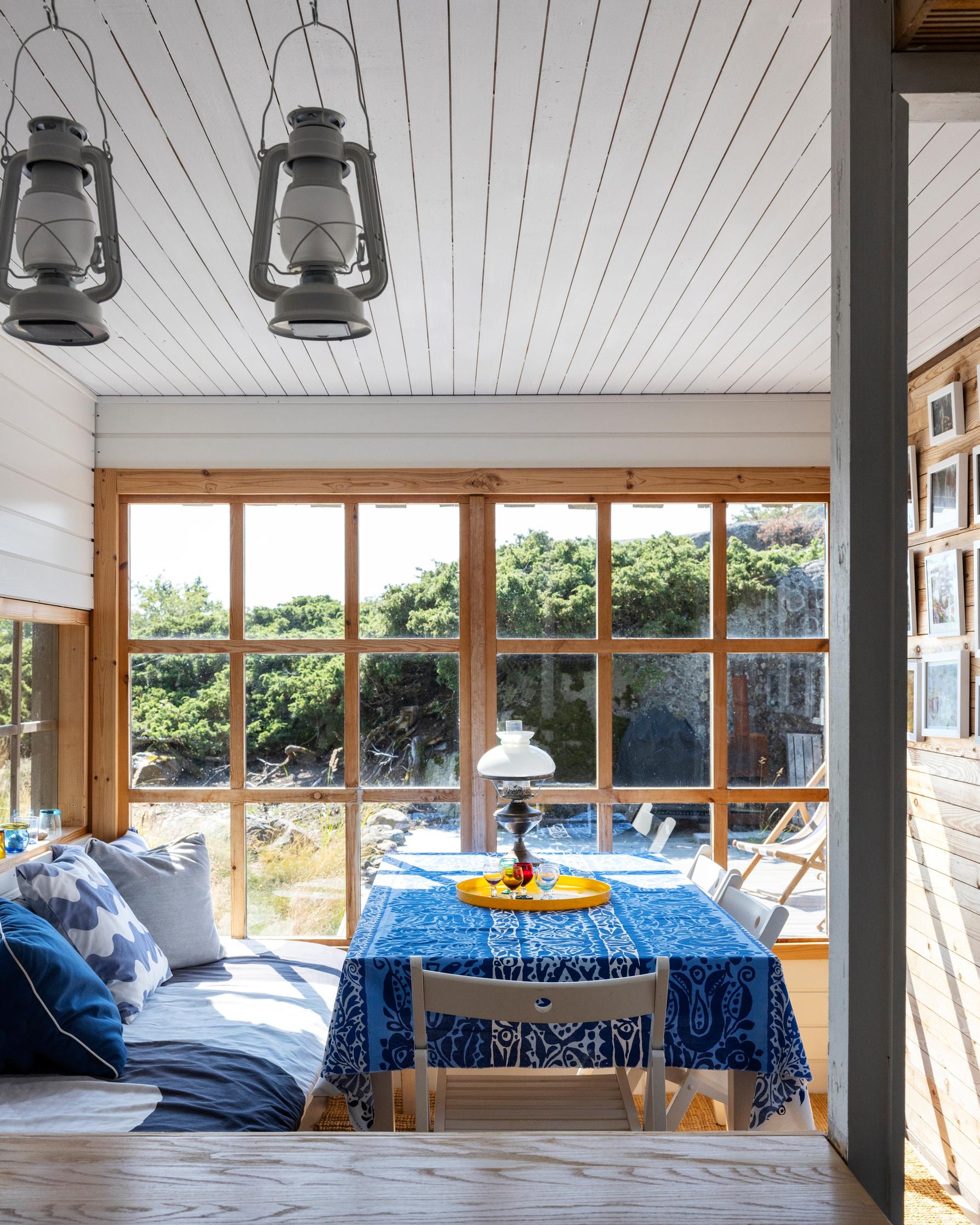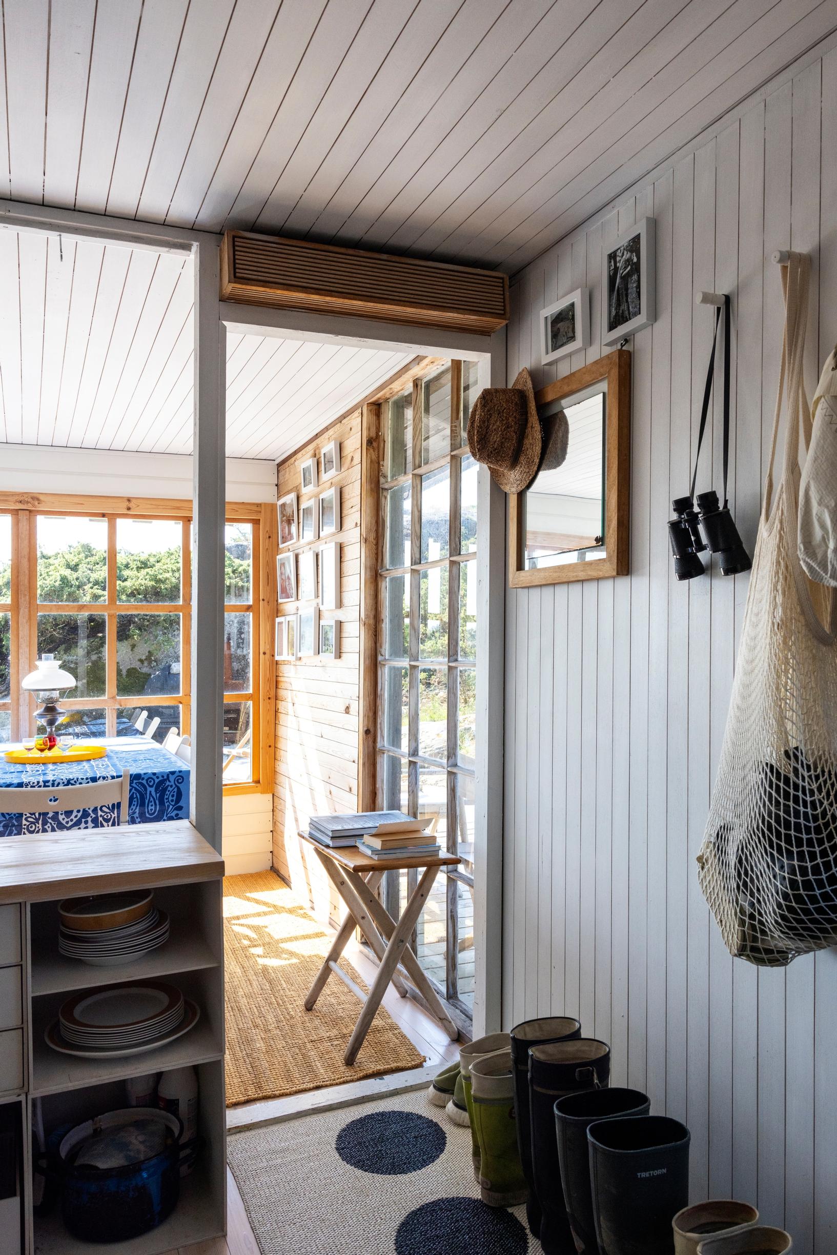 Mökin sisustus on säilynyt pitkälti sellaisena kuin se oli Kerstinin aikana. Luonnonmateriaalit näyttelevät edelleen pääosaa, kalusteet ovat samoja vuodesta toiseen kestäviä ja yksinkertaisia, ja väripilkuista pitävät huolen Marimekon kuosit.