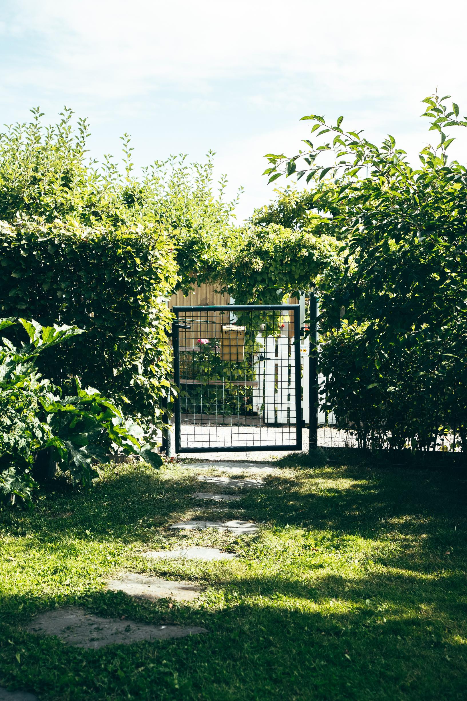 Löytämämme mökki on lisäksi talvilämmin. Neliöitä on maksimimäärä eli 26. Kesämaja olisi ollut edullisempi, mutta niissä ei ole aidattua pihaa. Koirien ja lasten takia se on meille välttämätön. Piha-aidat ovat korkeintaan 140-senttisiä, jotta ohikulkijatkin voivat ihastella istutuksia. Alue on päivisin avoinna kaikille.