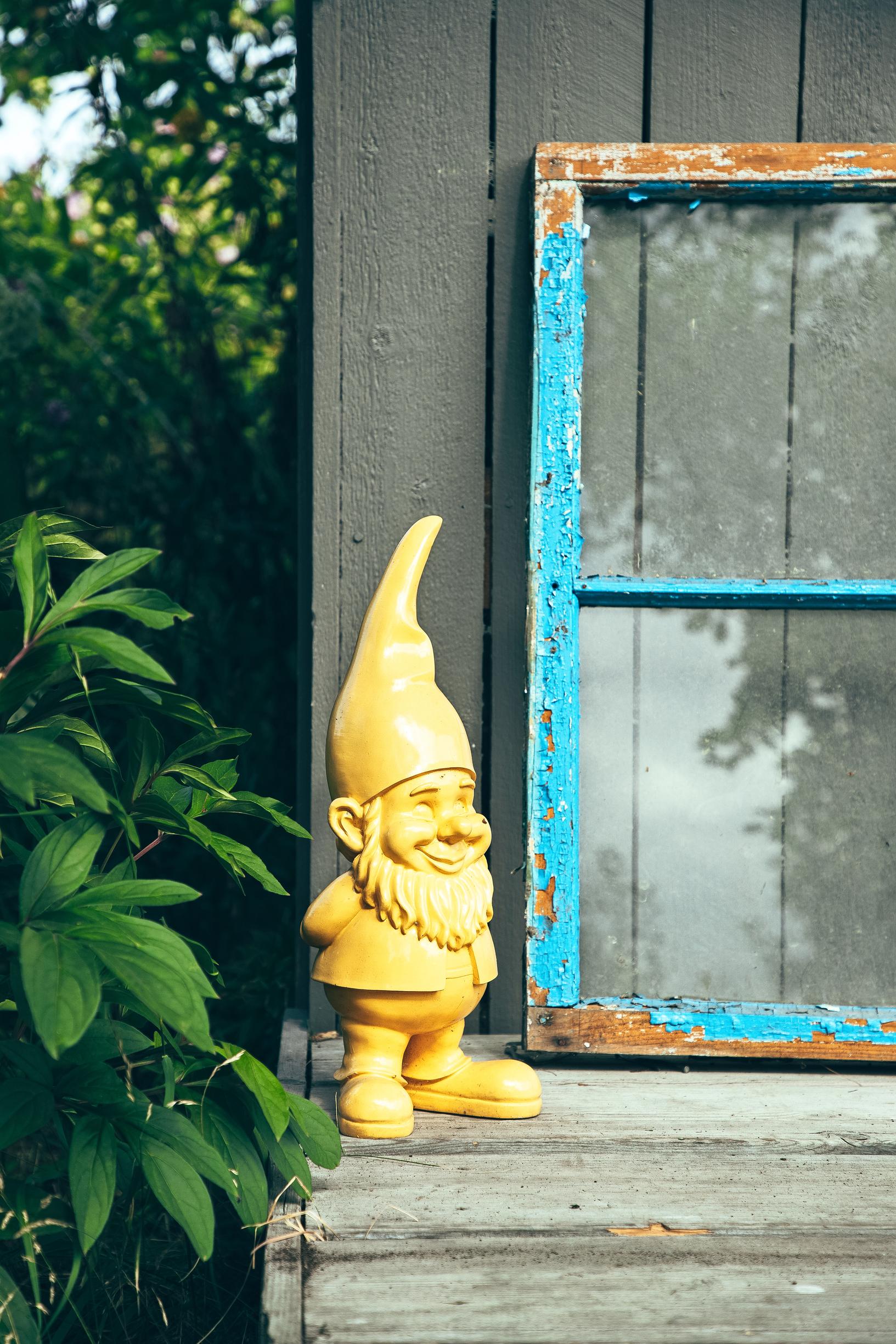 Hattarakaapit, puutarhatonttu – ja taustalla kaupungin urbaanit äänet! Marin ja Santun perheen kesäparatiisi on 26 neliön siirtolapuutarhamökki