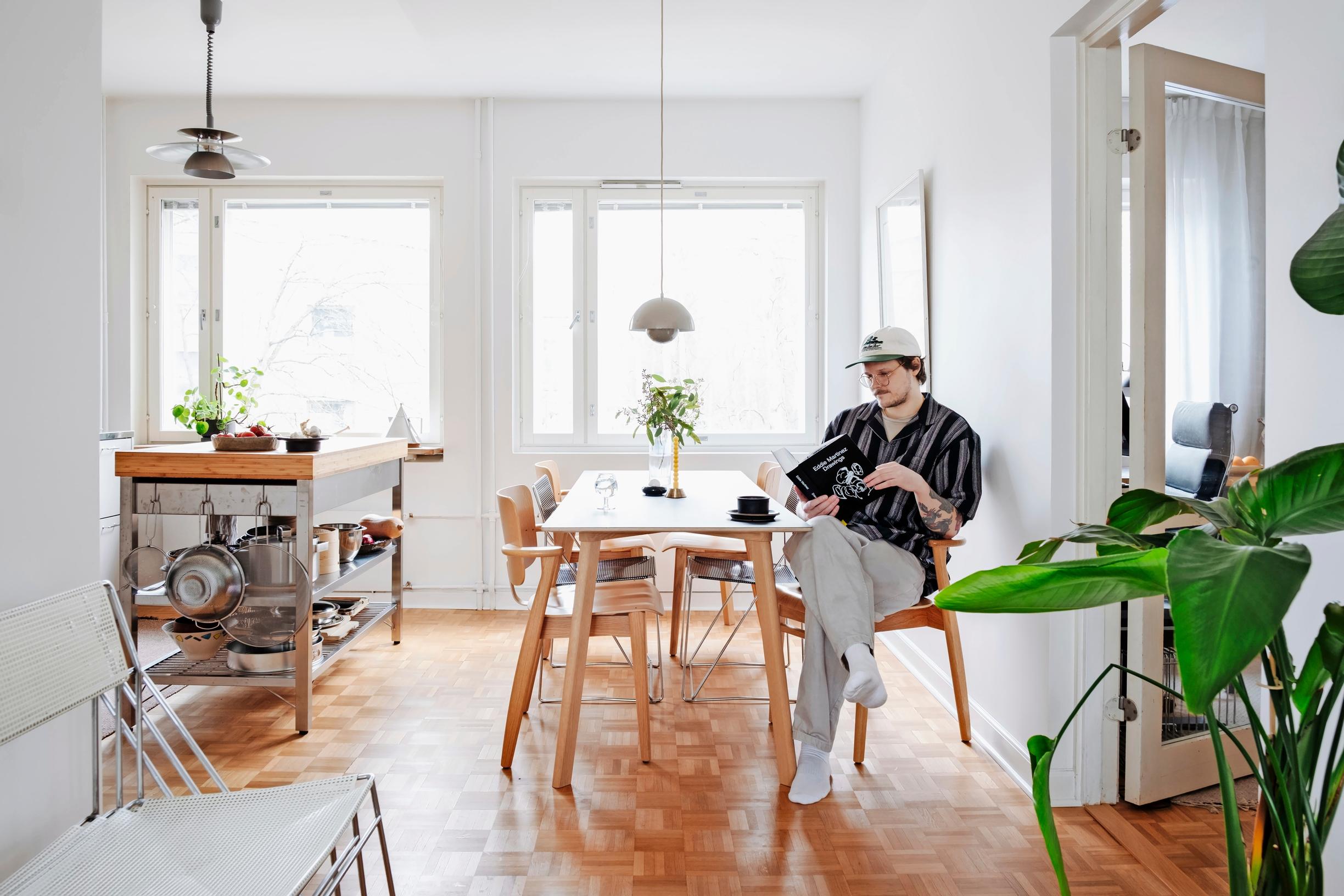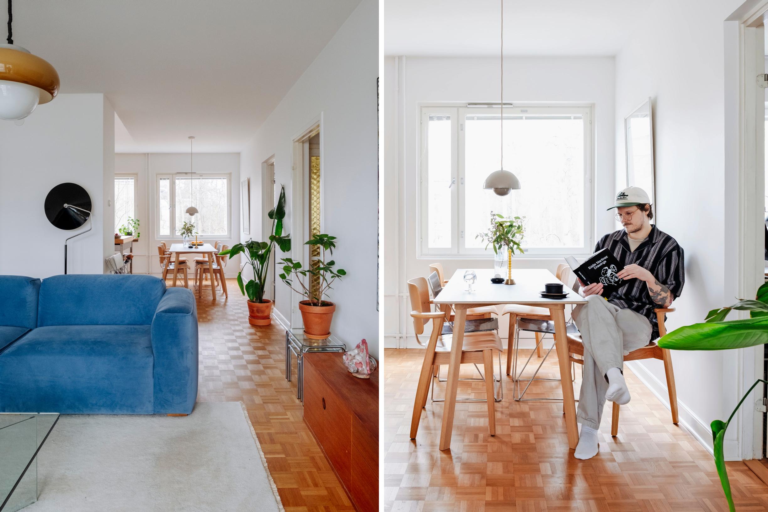 Pariskunta asuu Kannelmäessä Länsi-Helsingissä. Ennen tämän ensimmäisen omistusasuntonsa ostoa neljä vuotta sitten he vaihtoivat kotiosoitetta tiuhaan. Viimeisin etappi oli pieni kaksio Helsingin Toukolassa. Mutta sitten puhkesi koronapandemia ja kodin ahtaat tilat alkoivat ahdistaa.