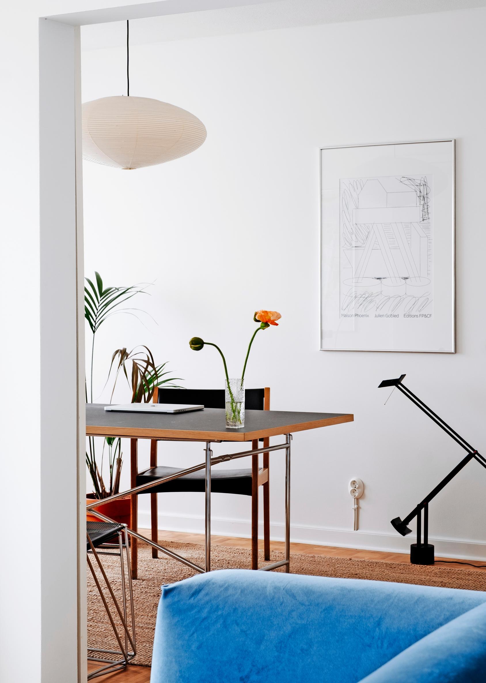 Sinun puoli ja minun puoli. Kuvittajan ja graafisen suunnittelijan kotiin Helsingin Kannelmäessä mahtuu molemmille omat työhuoneet designlöytöineen. ”Olohuoneen poikki on hyvä huudella toiselle kommentteja.”