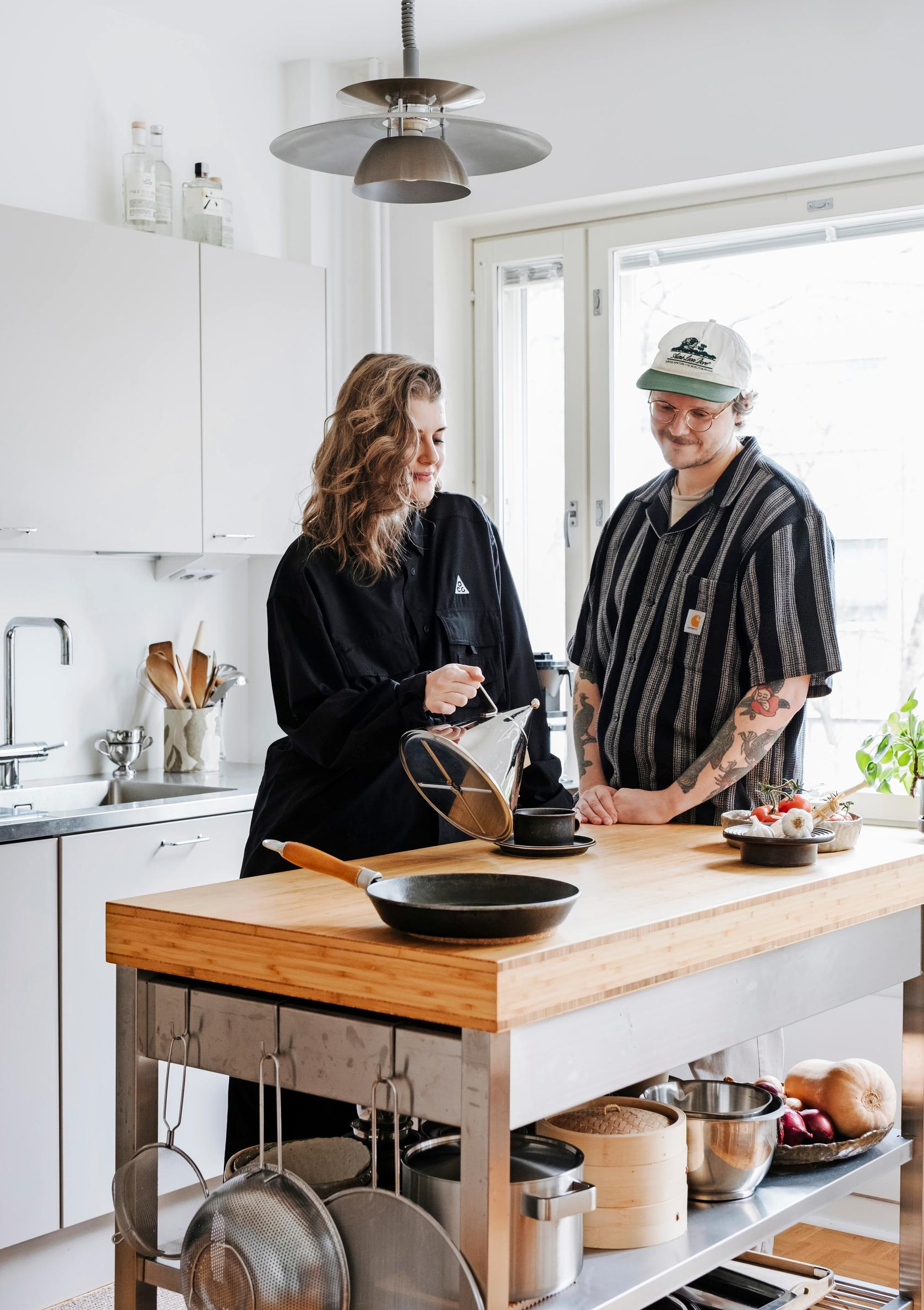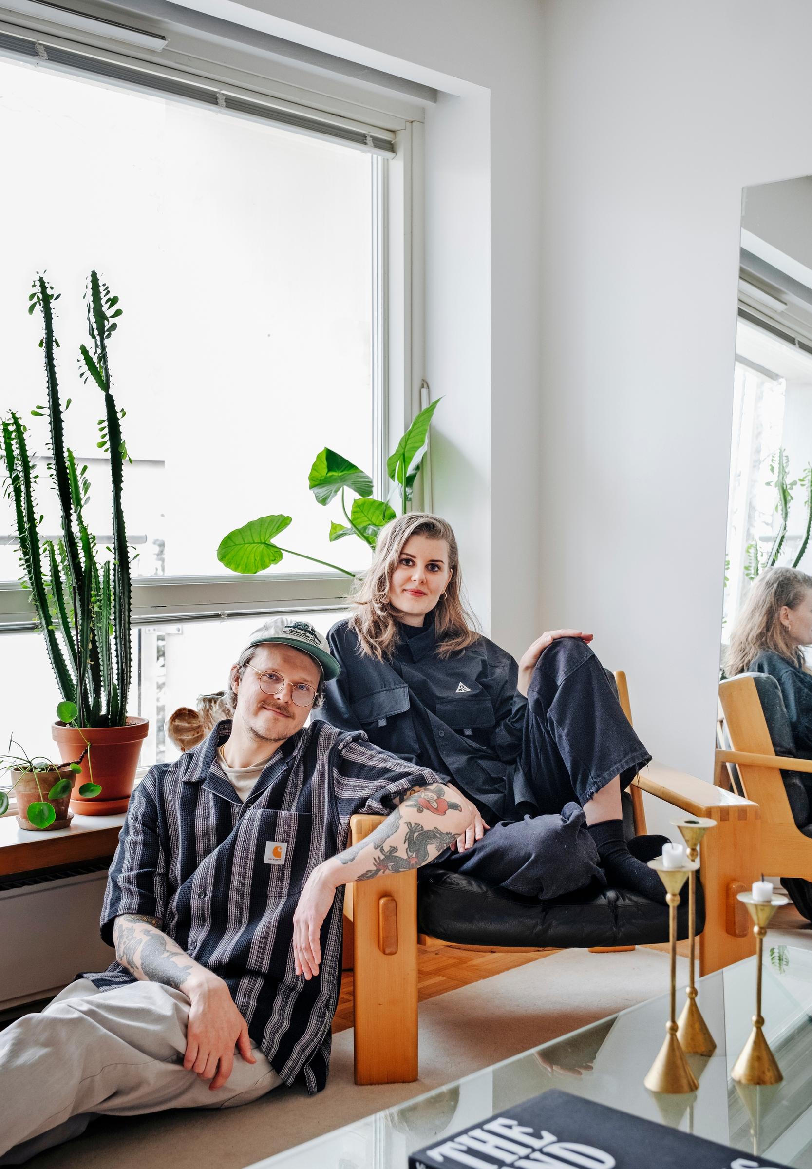 asukkaat Graafinen suunnittelija, AD Marina Veziko, 36, ja kuvittaja Robert Lönnqvist, 37. Instagram: @veziko ja @rakastaja_robert.