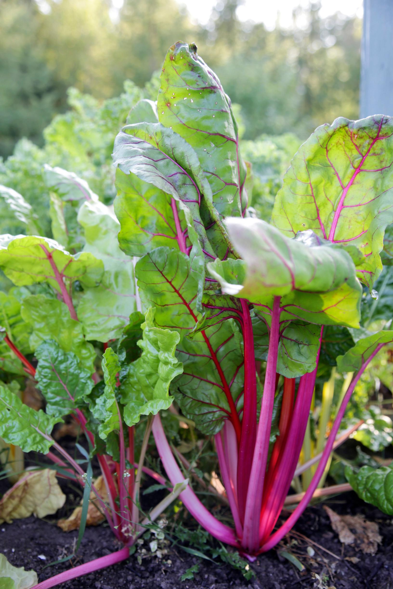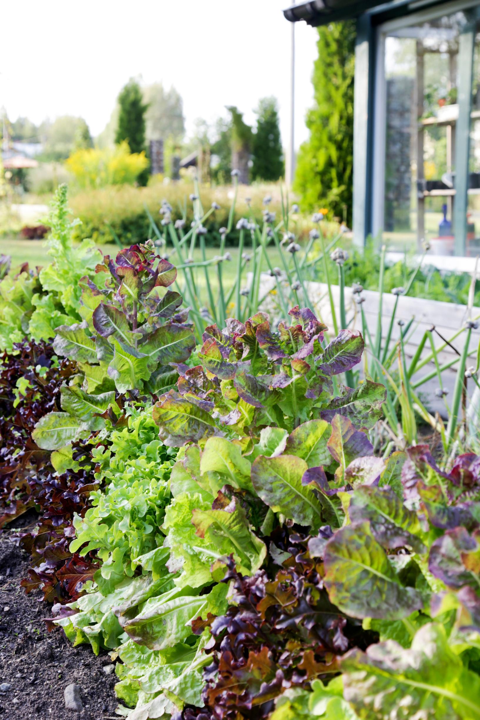 Kauniisti ryhmitellyt hyötykasvi-istutukset ovat pääosassa May-Len ja Rabbe Eden suuressa puutarhassa. Sadonkorjuu onkin täällä parasta aikaa.