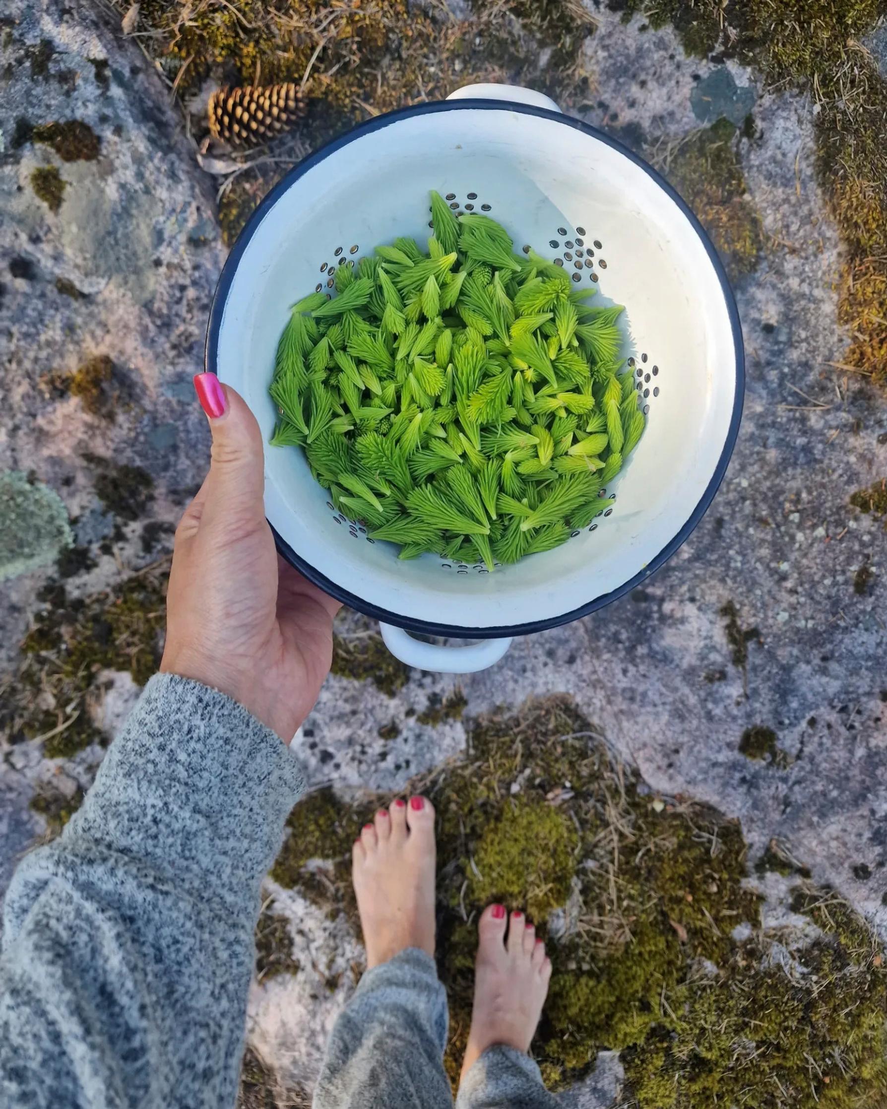 unohtua hetkeen ja katsoa yksityiskohtia. Seuraan kasvien rytmiä ja kuvaan paljon mökin lähiluonnossa. Tykkäämme, että luonto saa olla ympärillä villi, ja se melkein kätkee jo koko mökin sisäänsä. Osaan nähdä pieniä asioita sen villiyden keskellä.