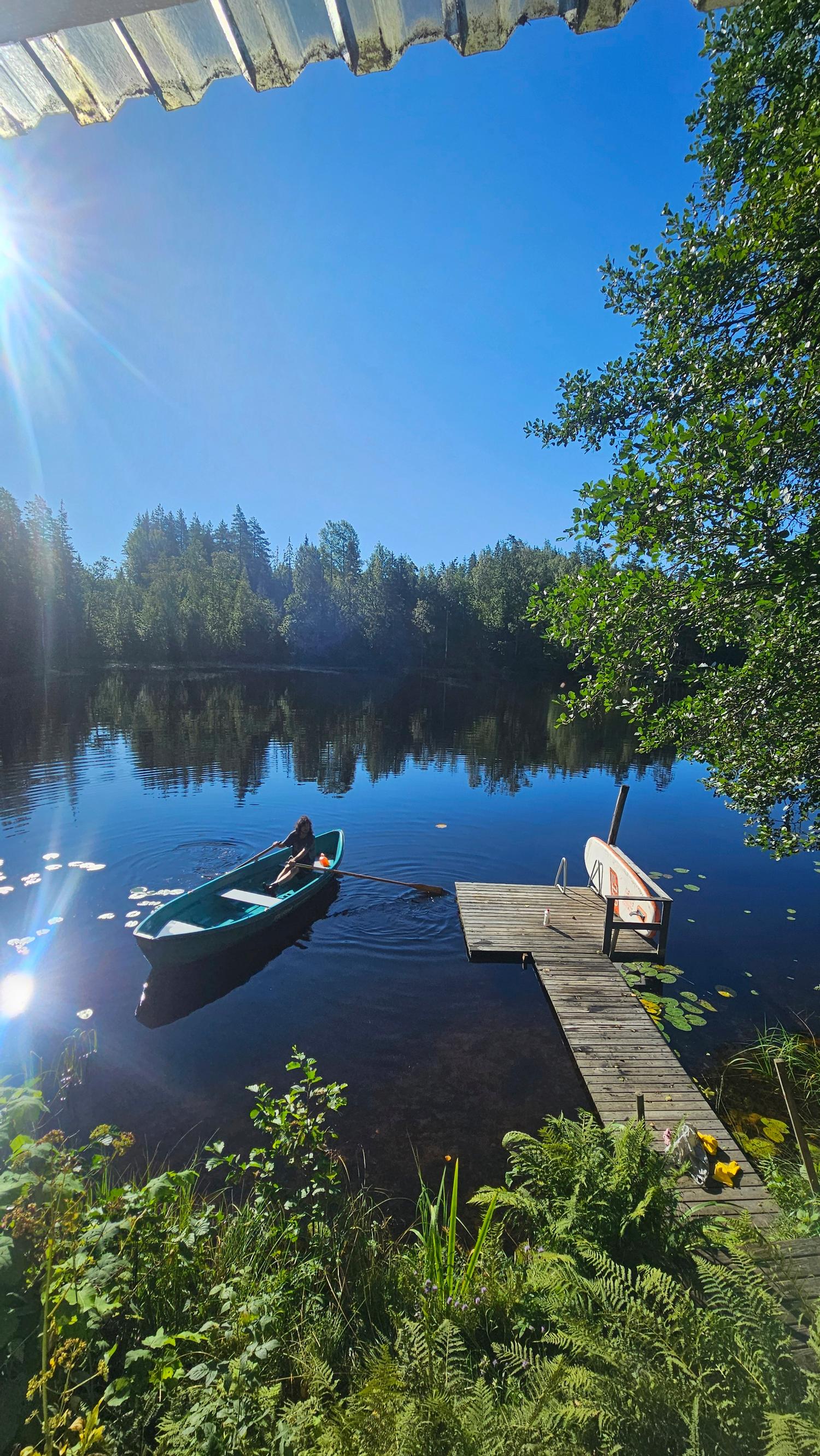 Molemmissa paikoissa myös soutelen ja uin. Luonnonvesissä uiminen on minulle ehkä kaikkein rakkain asia mökillä. Uin monta kertaa päivässä. Talvella teen avannon.