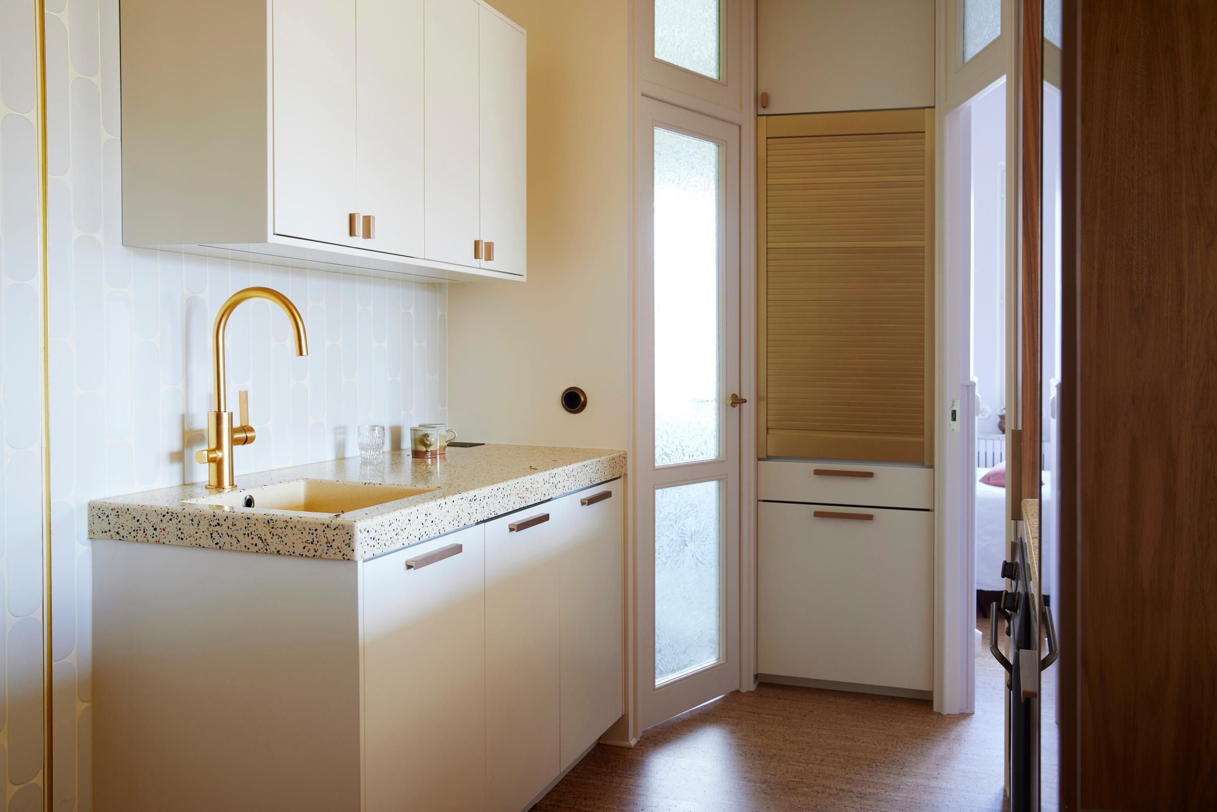 – Alkuperäiset kaapistot kannattaa säilyttää, jos ne ovat kohtuullisessa kunnossa. Ovet ja sisukset voi usein maalata. Siitä tulee iso säästö.