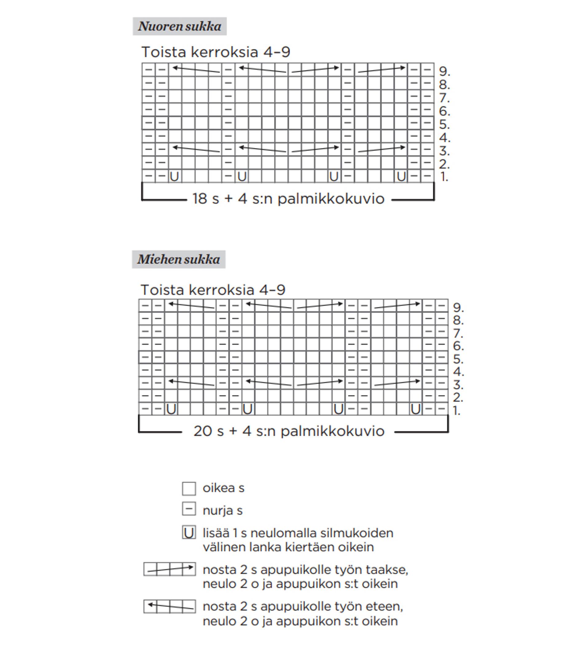 - Palmikkoneule: neulo ohjeen ja ruutupiirroksen mukaan.