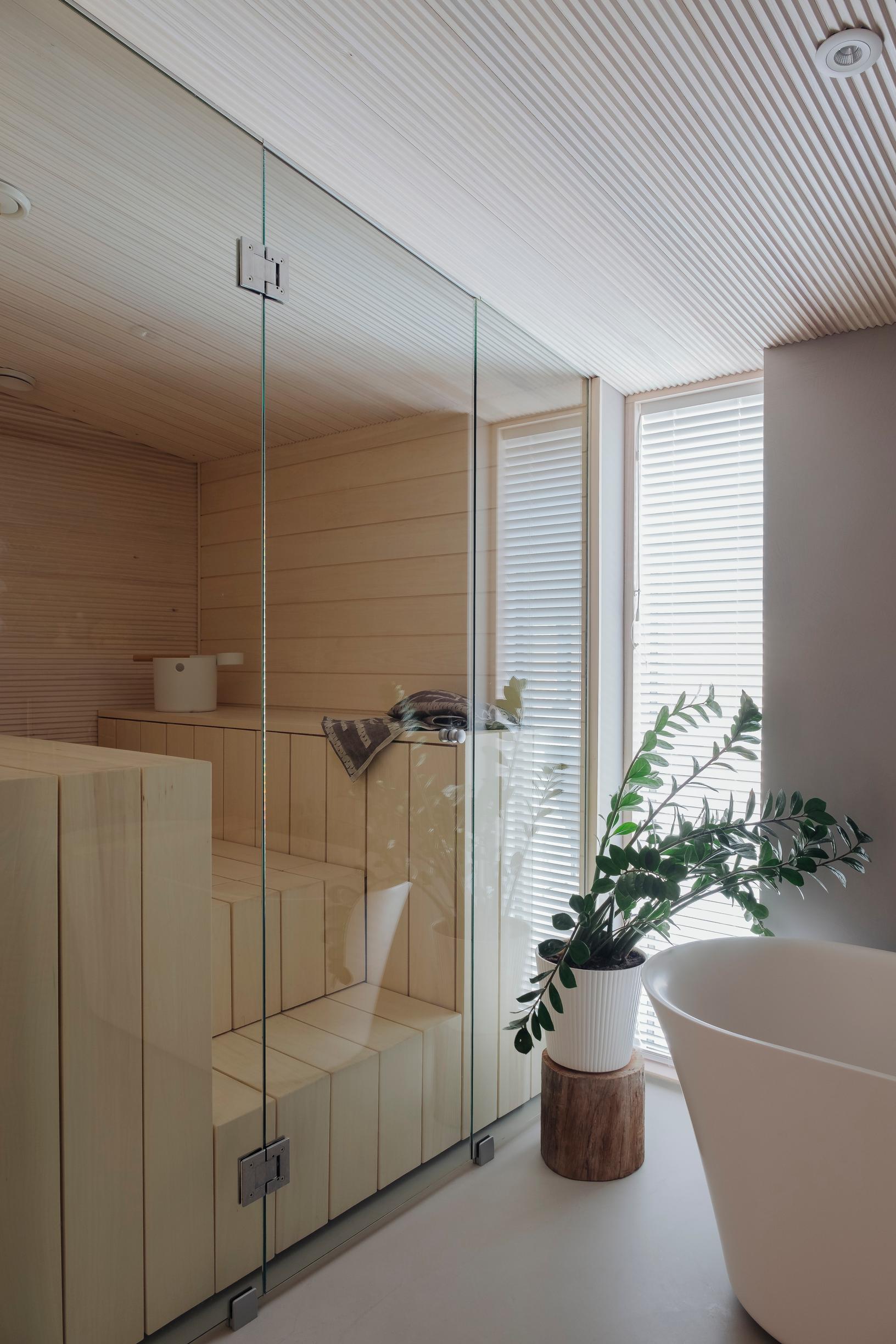 Kiireisessä arjessa sauna on paikka, joka pysäyttää vain hengittelemään ja olemaan läsnä. Sauna rauhoittaa rentoutuneeseen mielentilaan, sillä se on lämmin ja hiljainen, selkeä ja puupintainen. Se on kirjaimellisesti riisuttu tila: ei viihdykkeitä, ei ärsykkeitä.