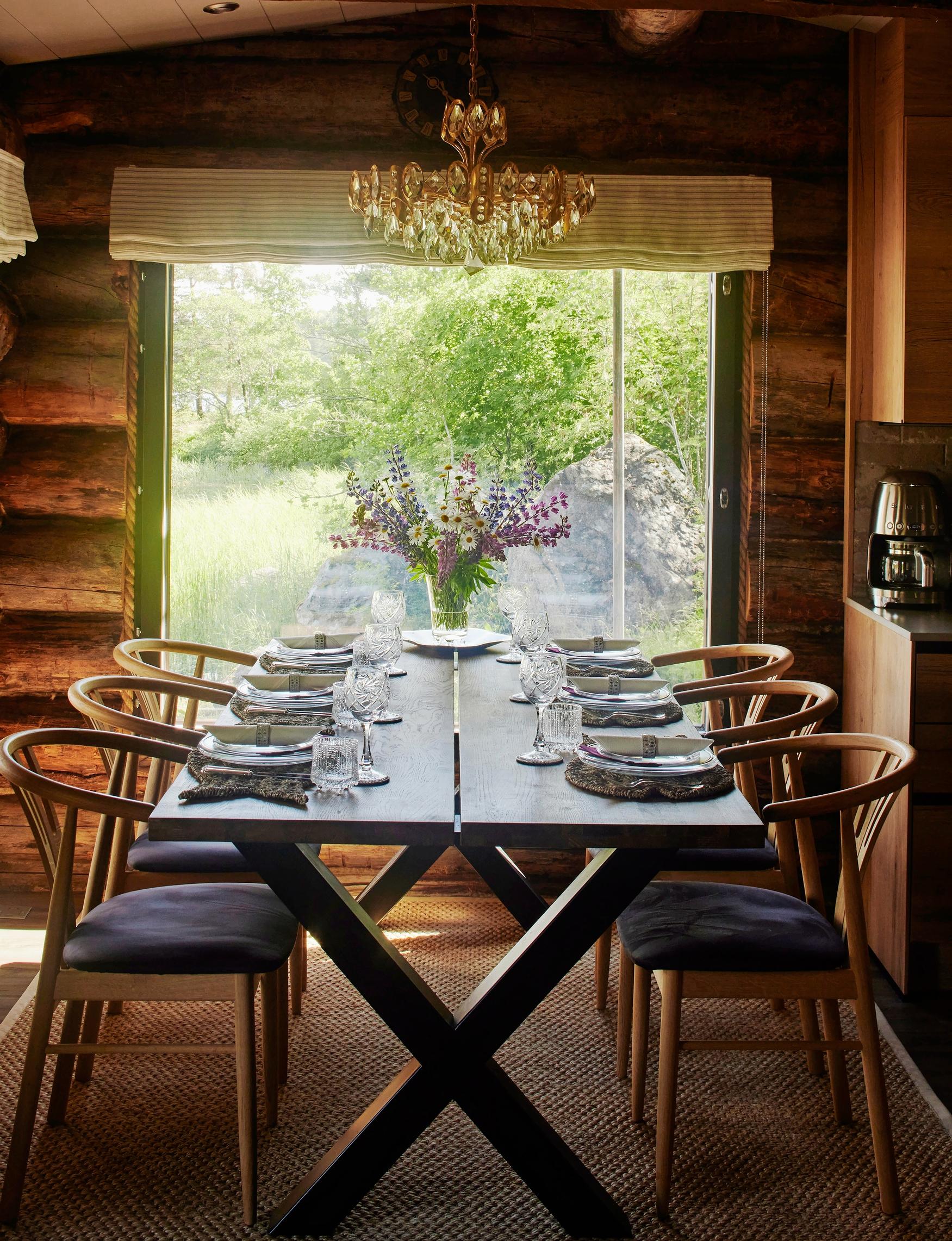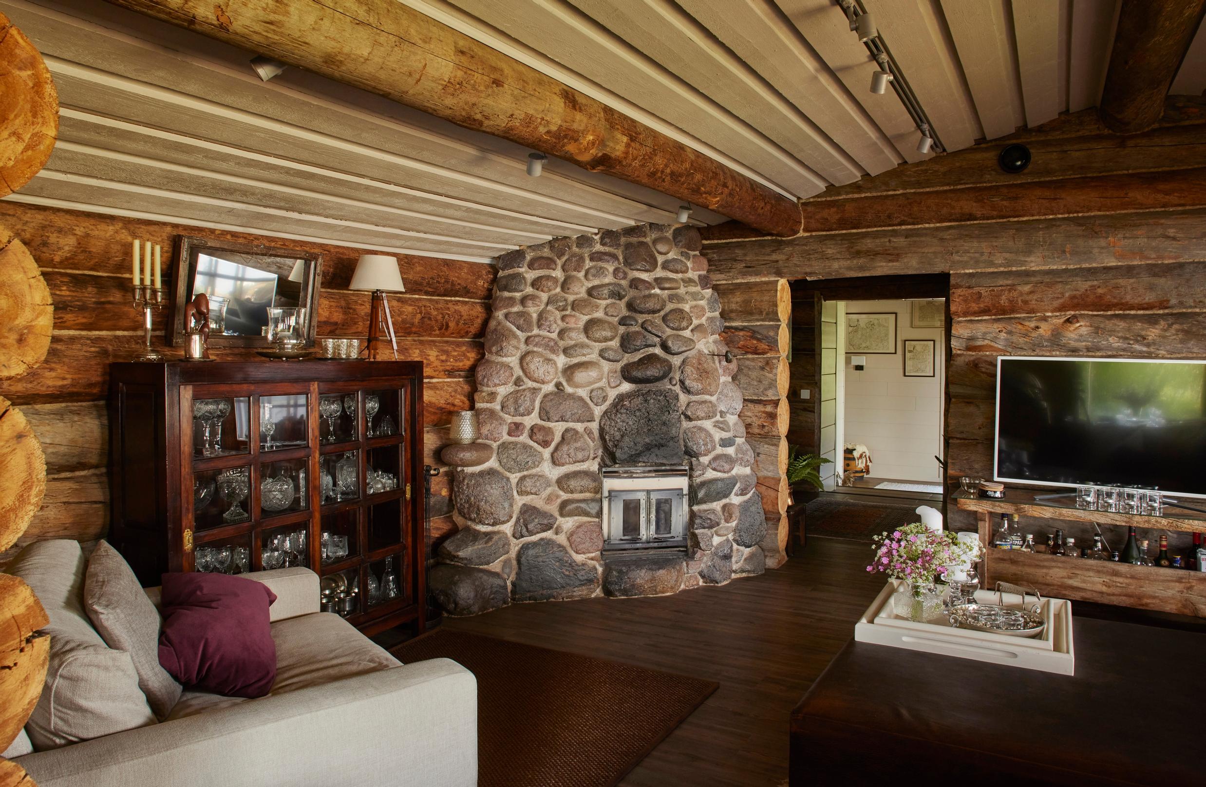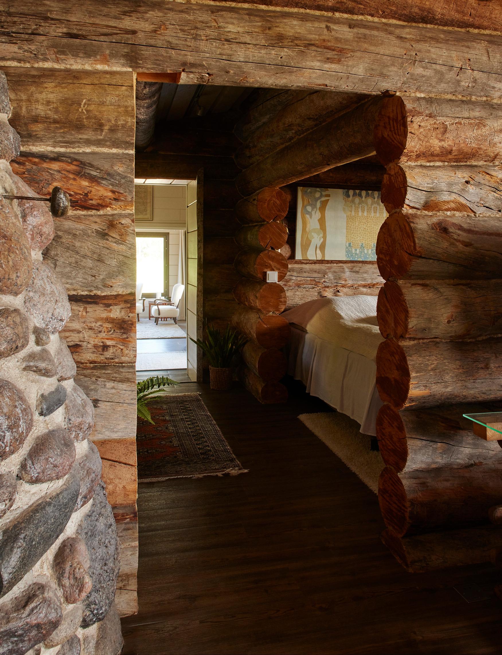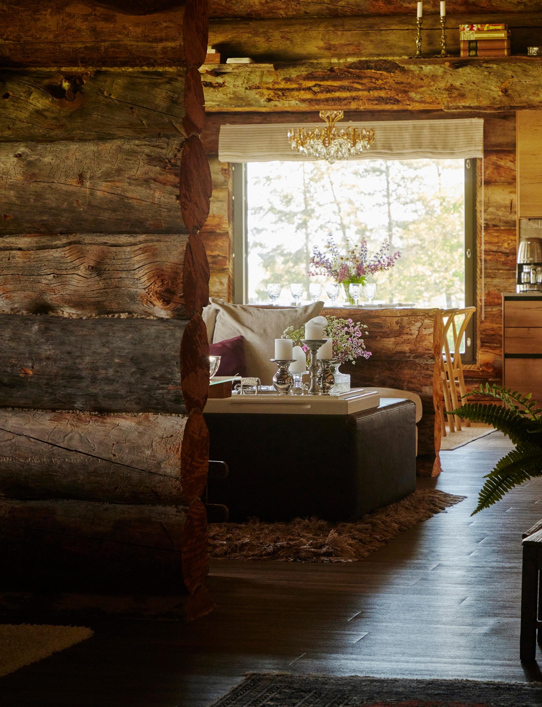 Paanasen vaikutus näkyy esimerkiksi pohjaratkaisussa ja valaistuksessa. Kelohonka on kaunis materiaali, mutta ennen mökki oli melko pimeä. Hyvä valaistus on tärkeää varsinkin nyt, kun mökin pitää toimia myös arjessa.