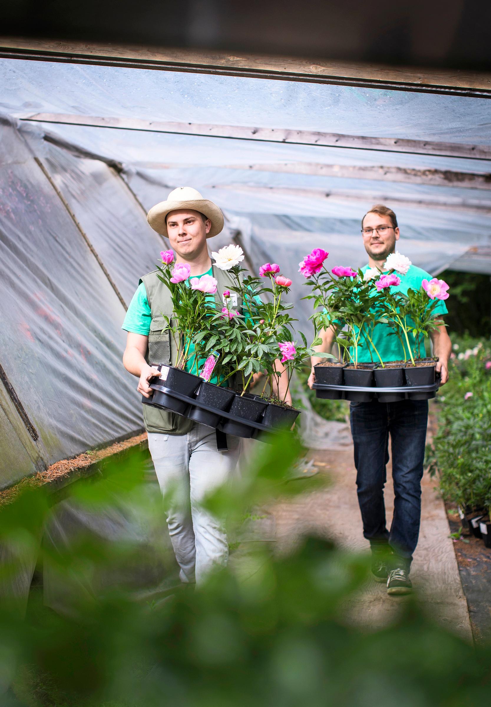 – Pioni oli isän lempikukka. Hän halusi keskittyä siihen ja lähti ulkomaille luomaan suhteita ja katselemaan, mistä erilaisia lajikkeita saisi myyntiin, Mikko kertoo.