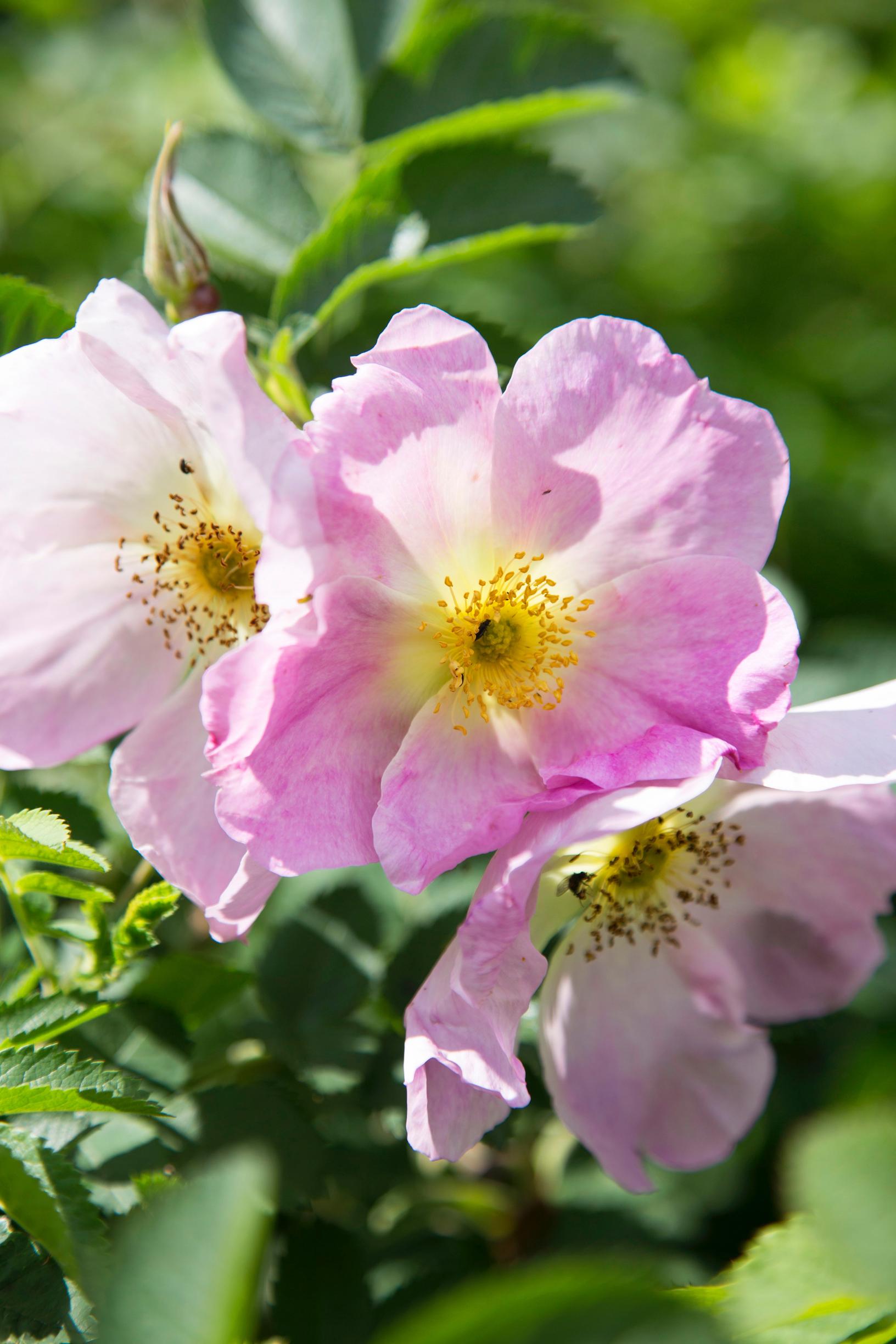 - ’Ritausma’-tarhakurtturuusu (Rosa Rugosa-ryhmä), 100–150 cm kukkii heinä–syyskuussa.