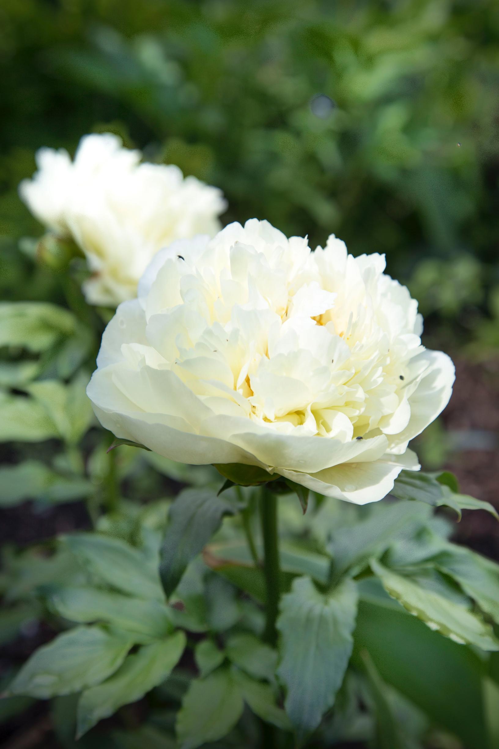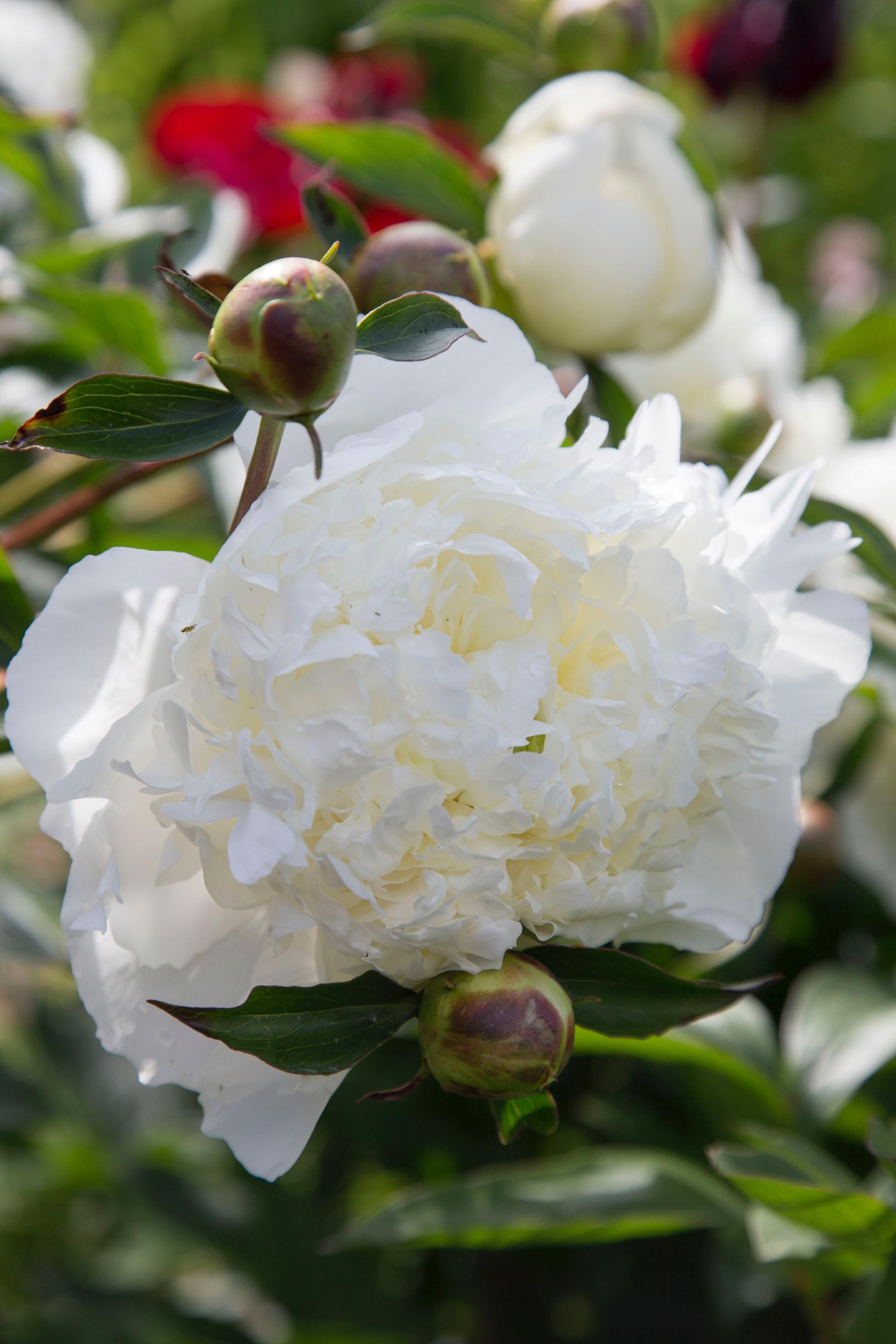 - ’Miss America’ -kiinanpioni (Paeonia lactiflora), 80–90 cm, kukkii heinäkuussa.