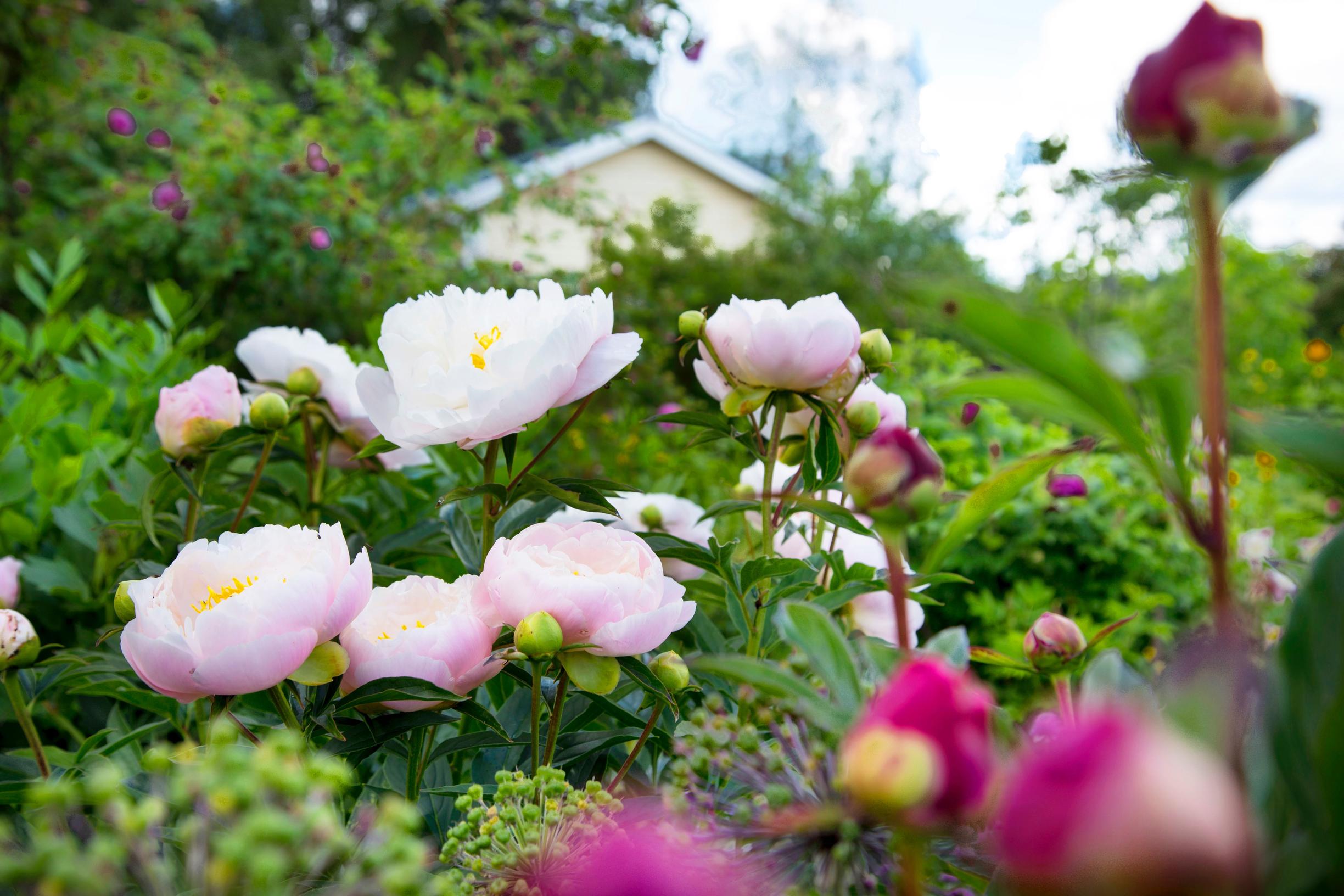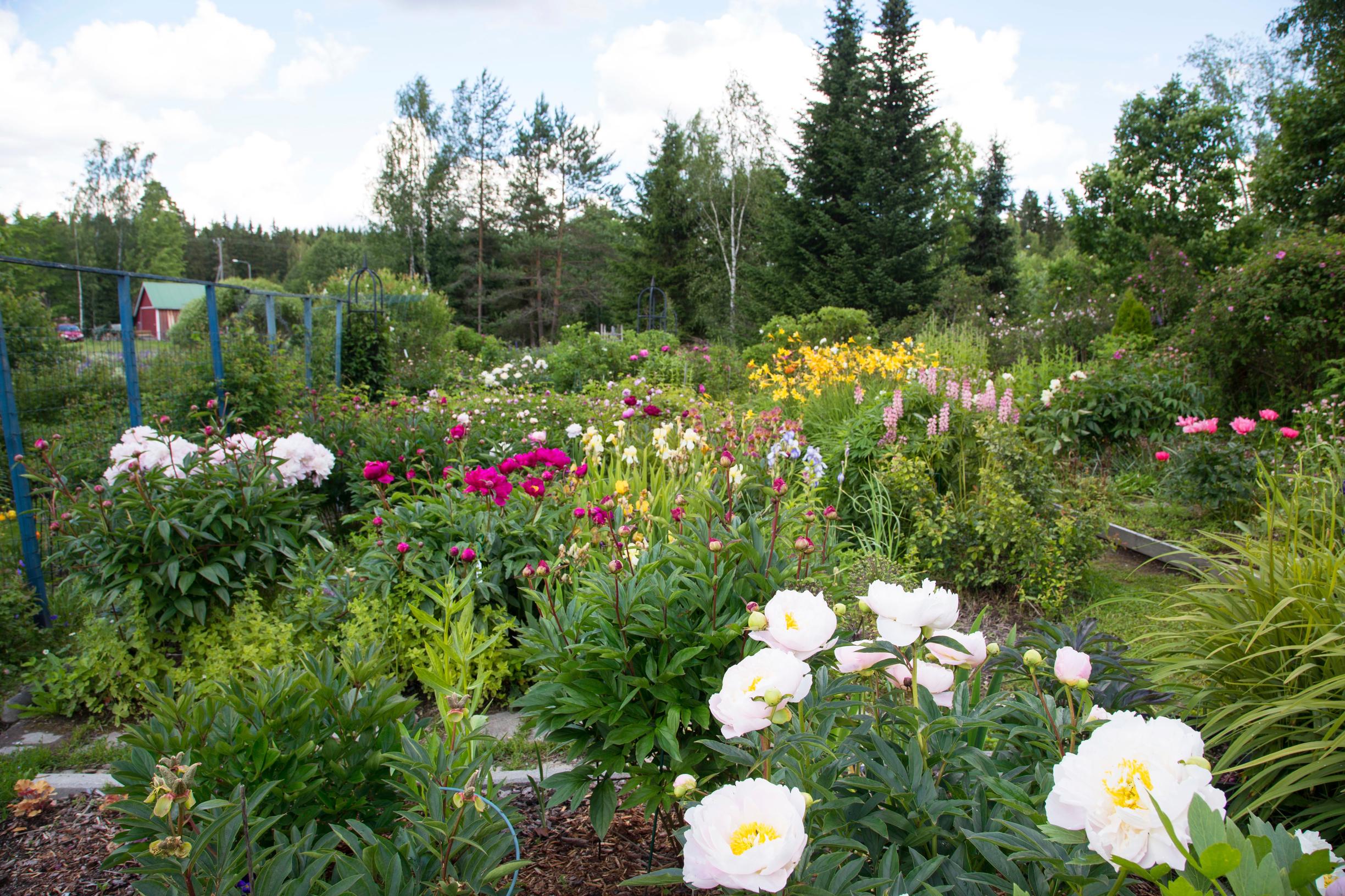 Mikä pionipiha! Liisan ja Mikon kukkatarhassa kasvaa yli 100 erilaista pionia